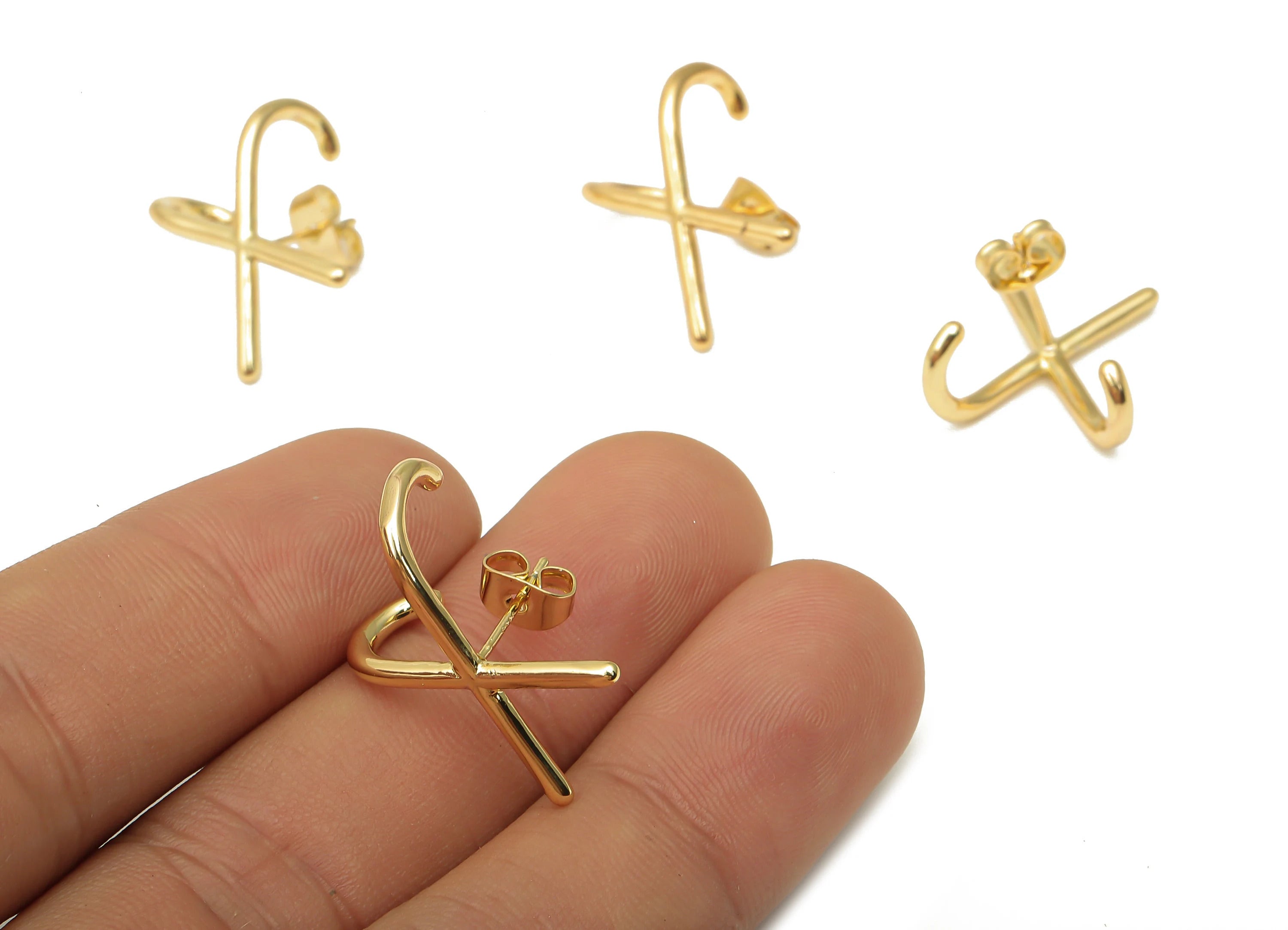 推回式耳钉 - 黄铜 - 925 银耳钉 - 18k 真金镀黄铜 - 4.55 克 - MJ201170