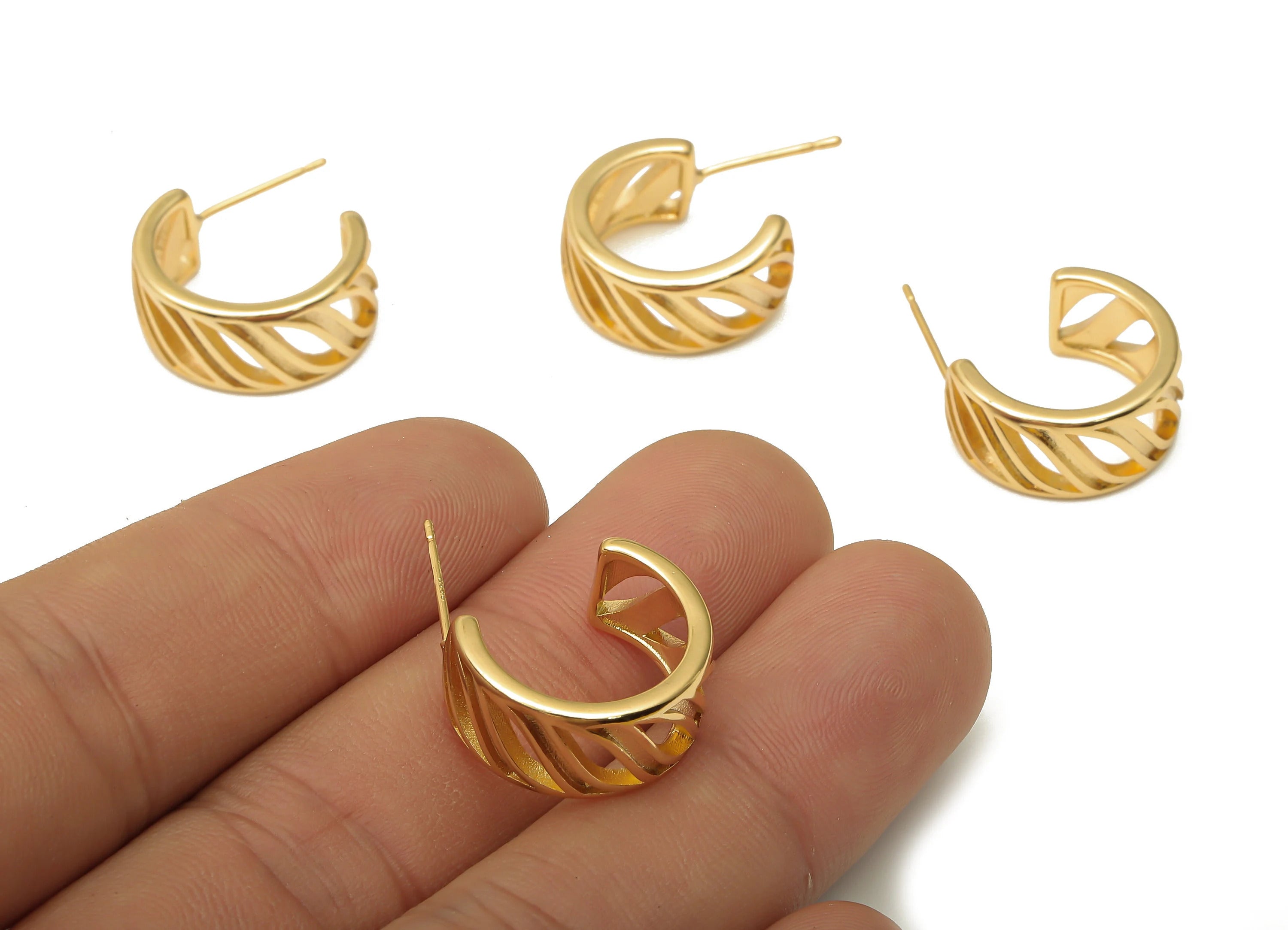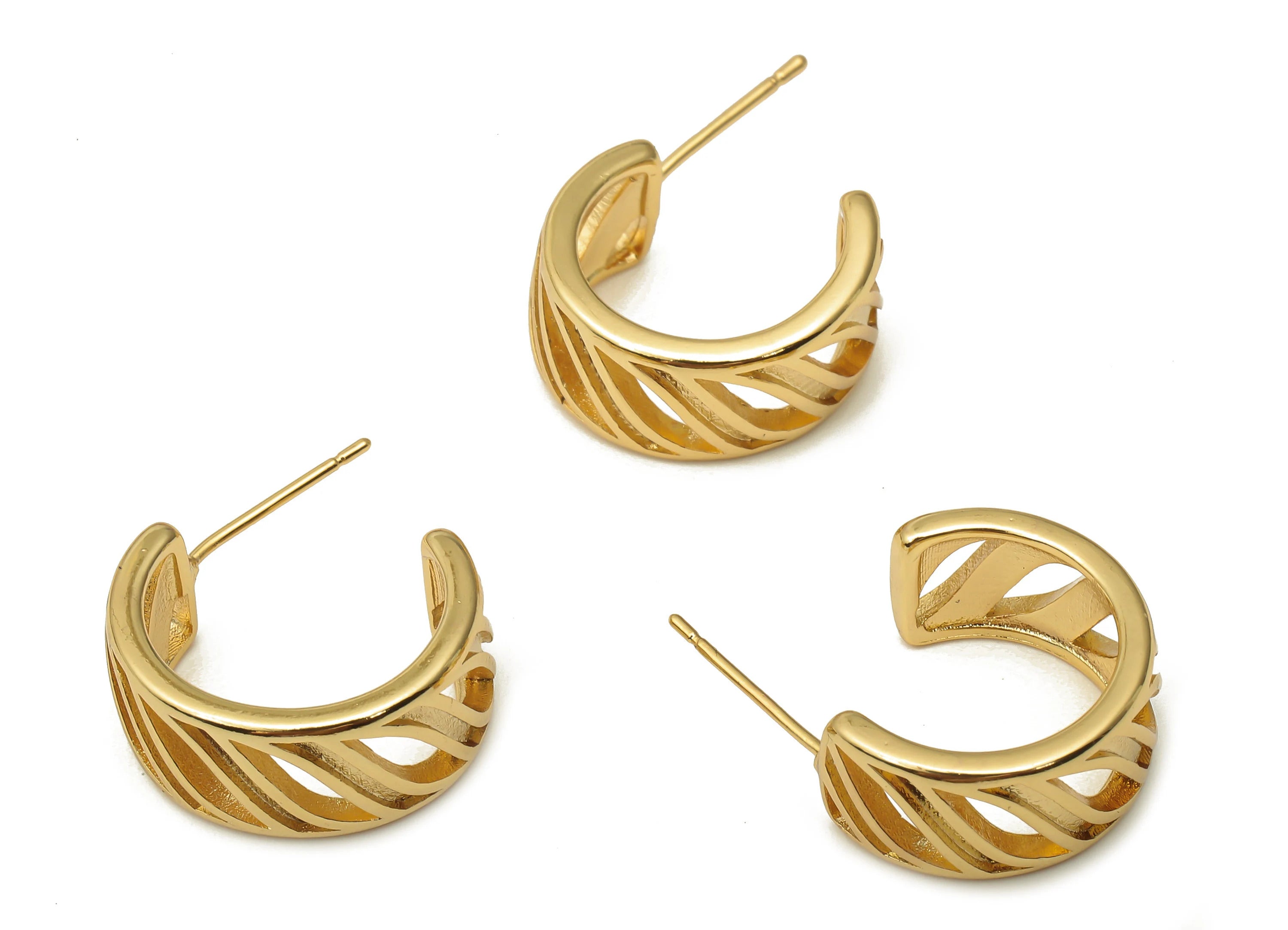 推回式耳钉 - 黄铜 - 925 银耳钉 - 18k 真金镀黄铜 - 7.87 克 - MJ201177