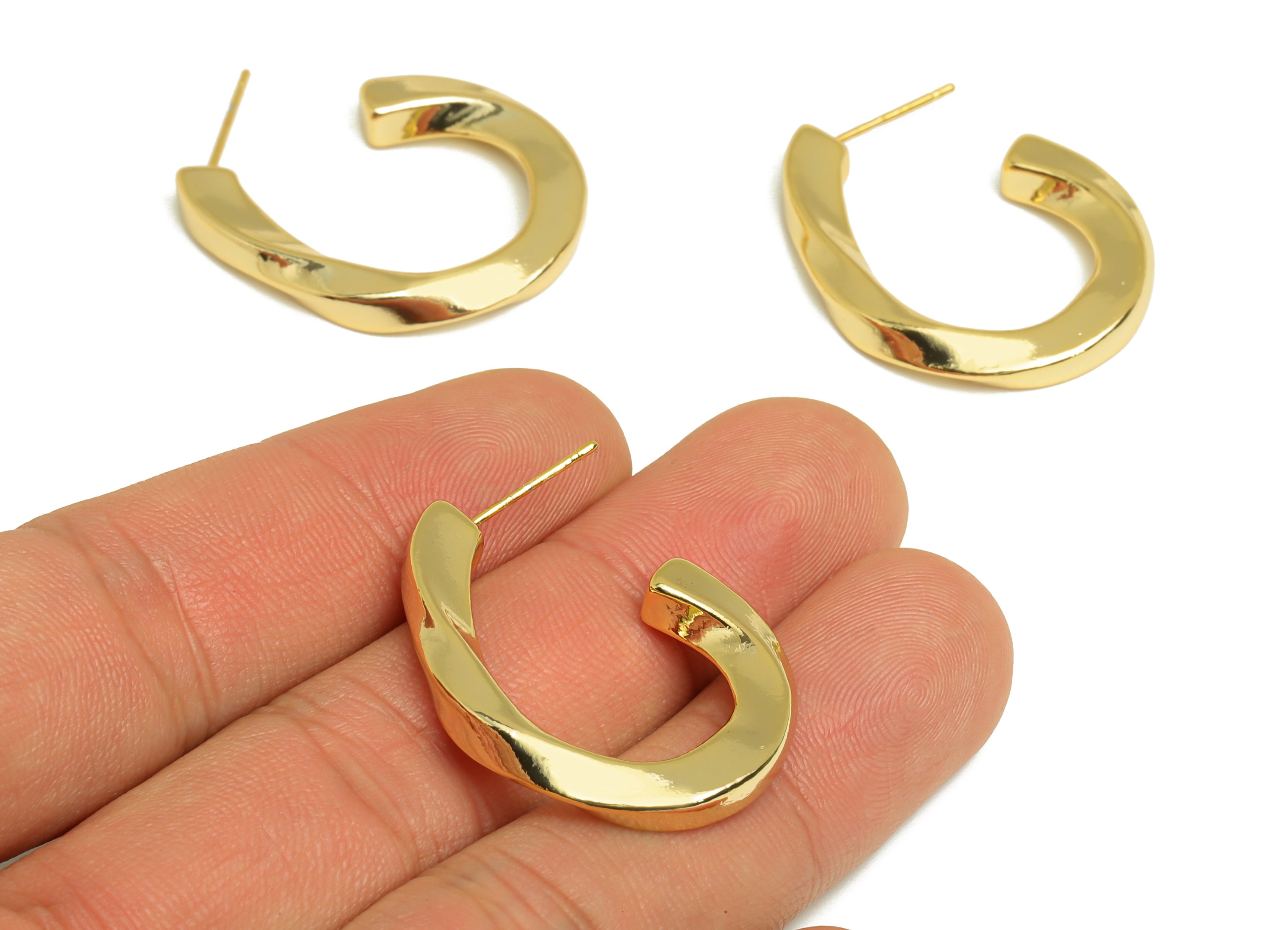 推回式耳钉 - 黄铜 - 黄铜耳钉 - 18k 真金镀层 - 16.1克 - MJ200661
