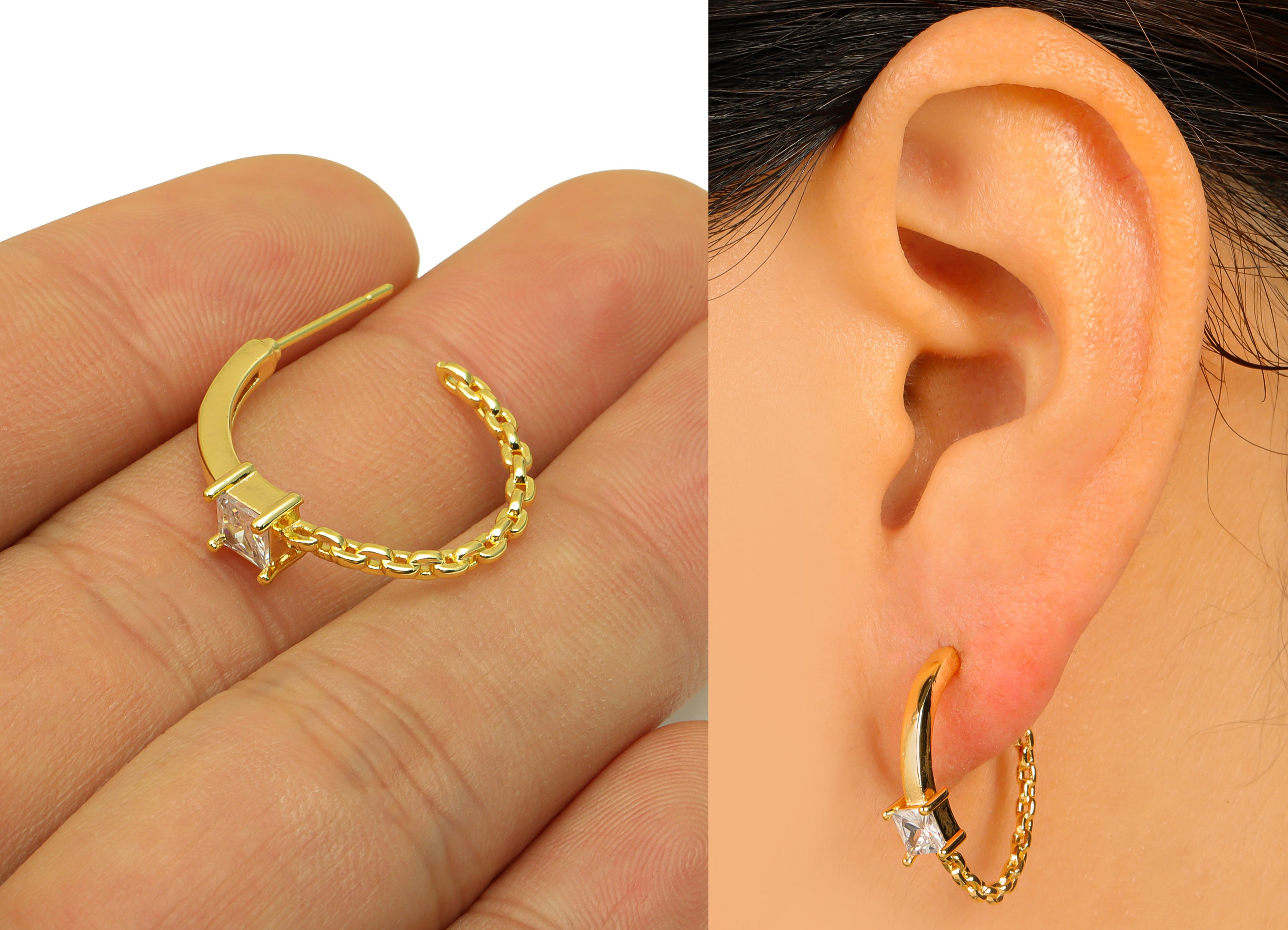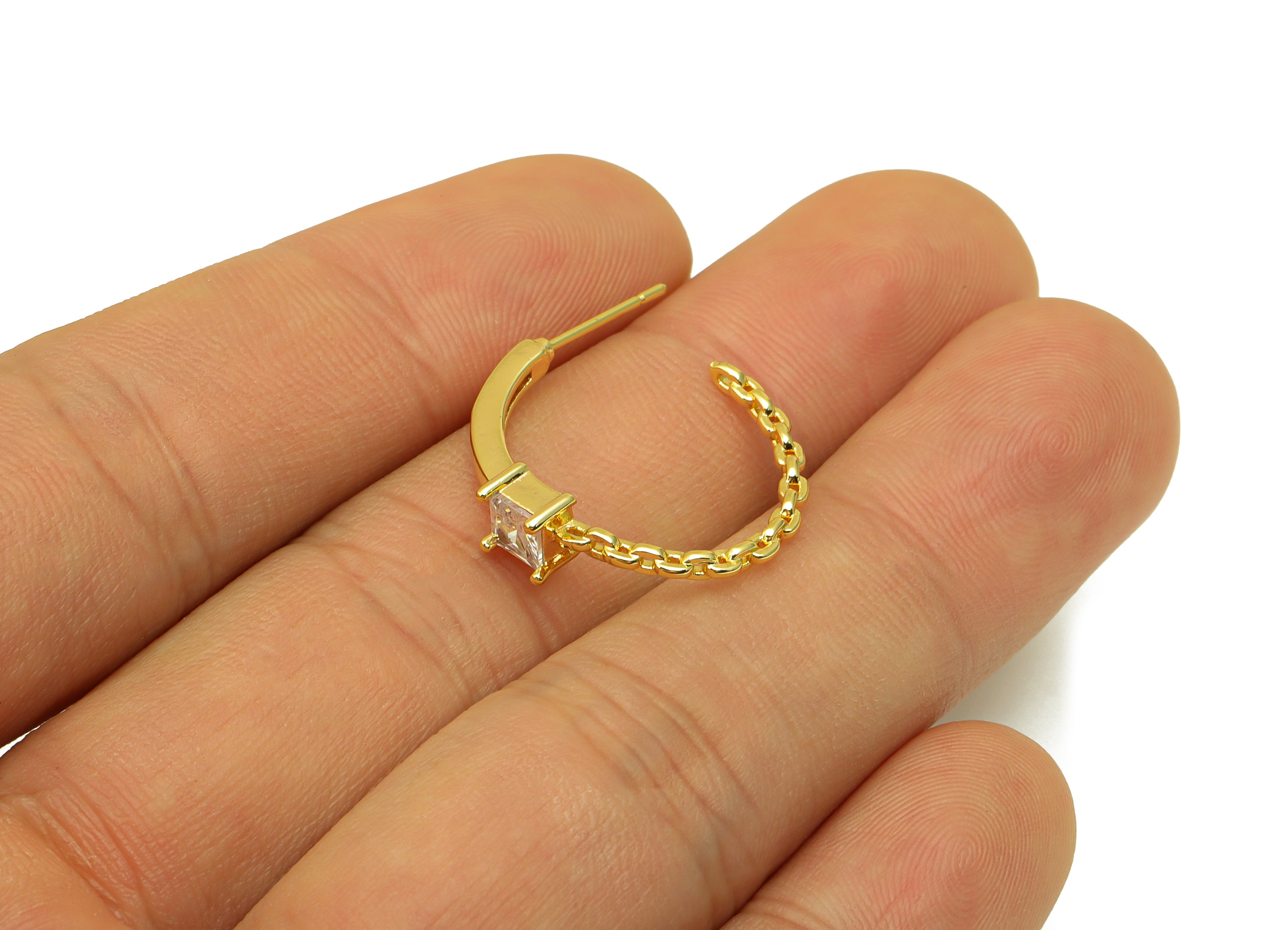 材质:黄铜 - 黄铜耳钉 - 锆石
