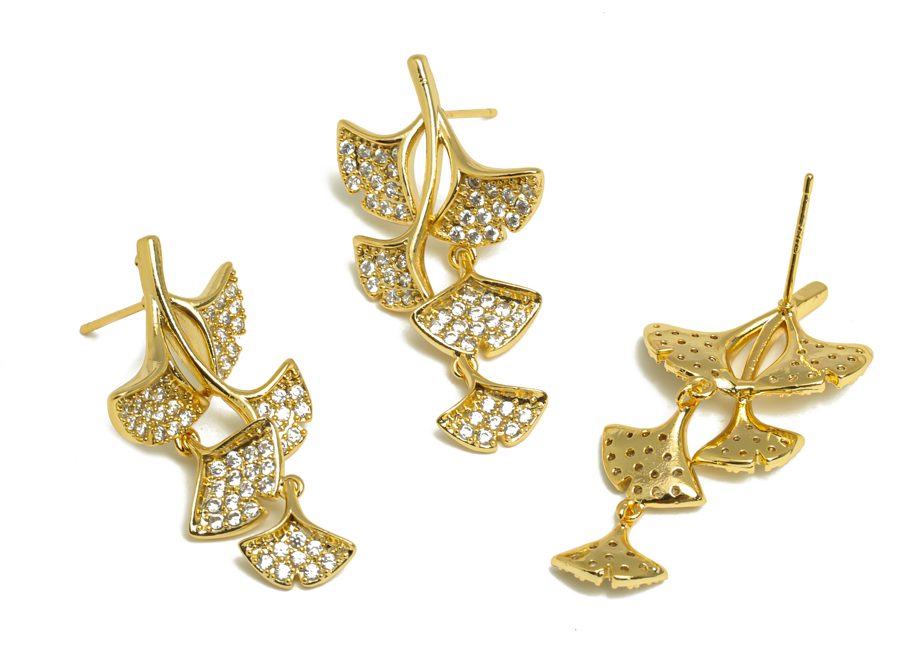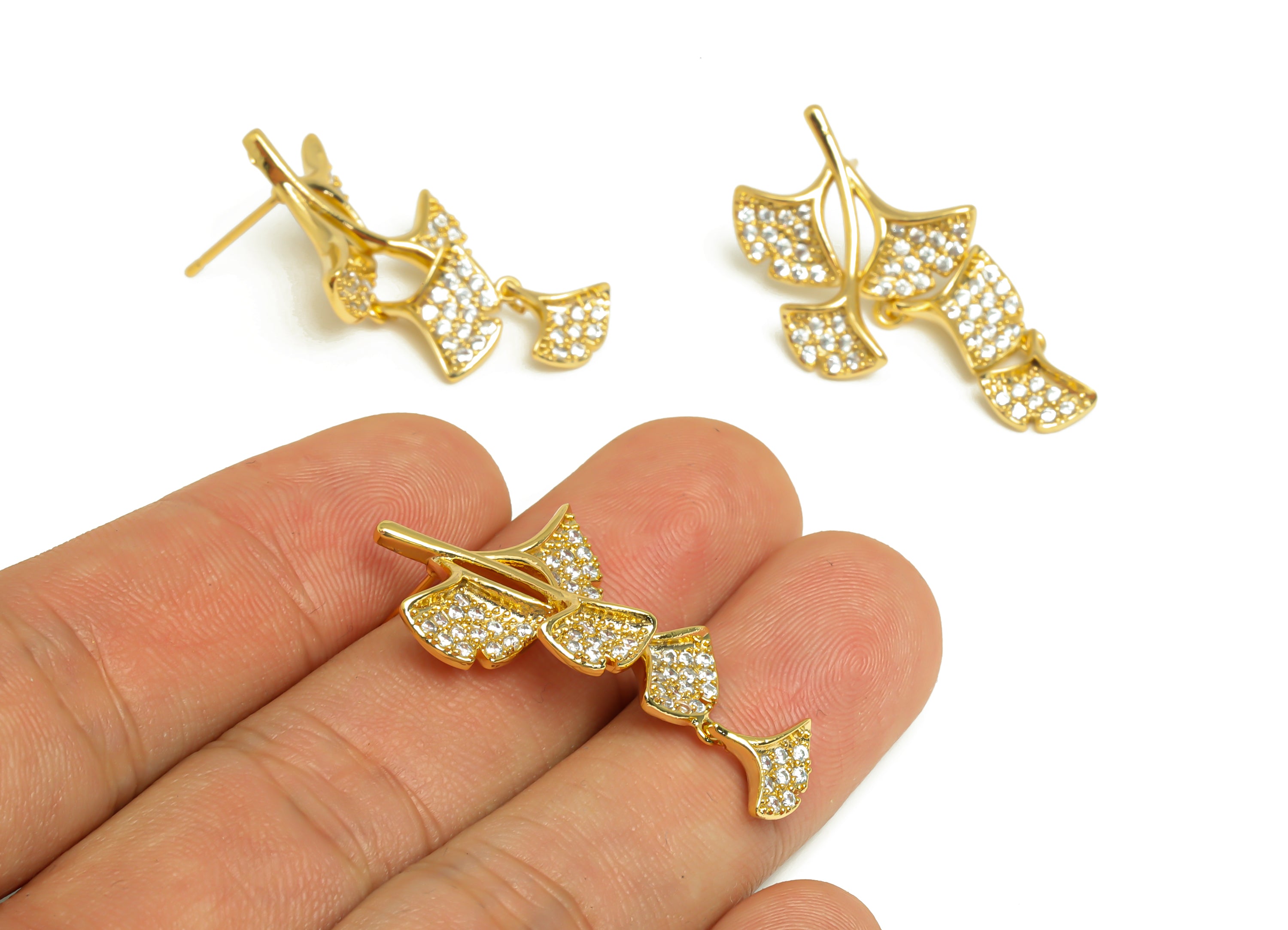 推回式耳钉 - 黄铜 - 黄铜耳钉 - 锆石 - 18k 真金镀层 - 8.4 克 - MJ201722
