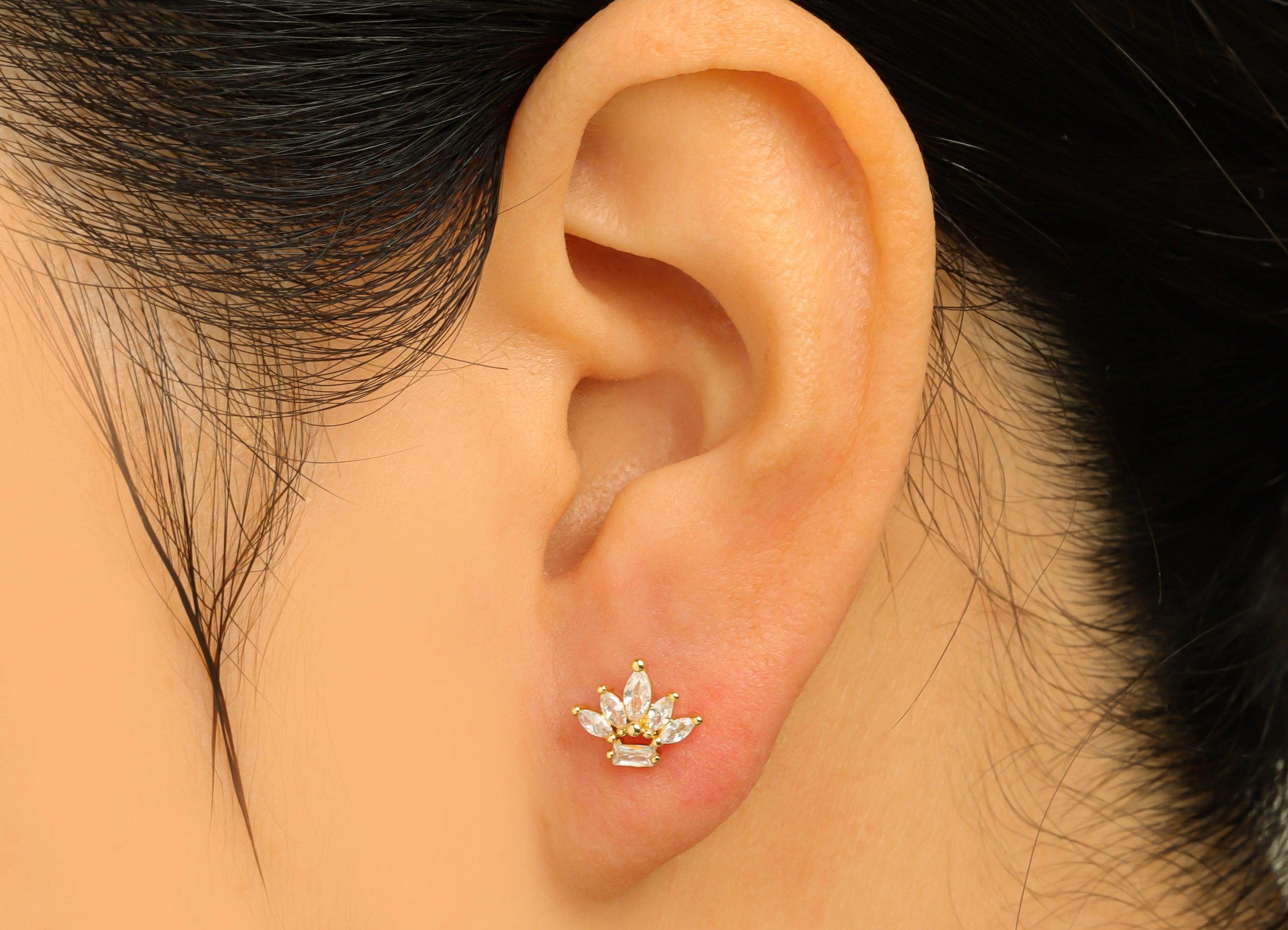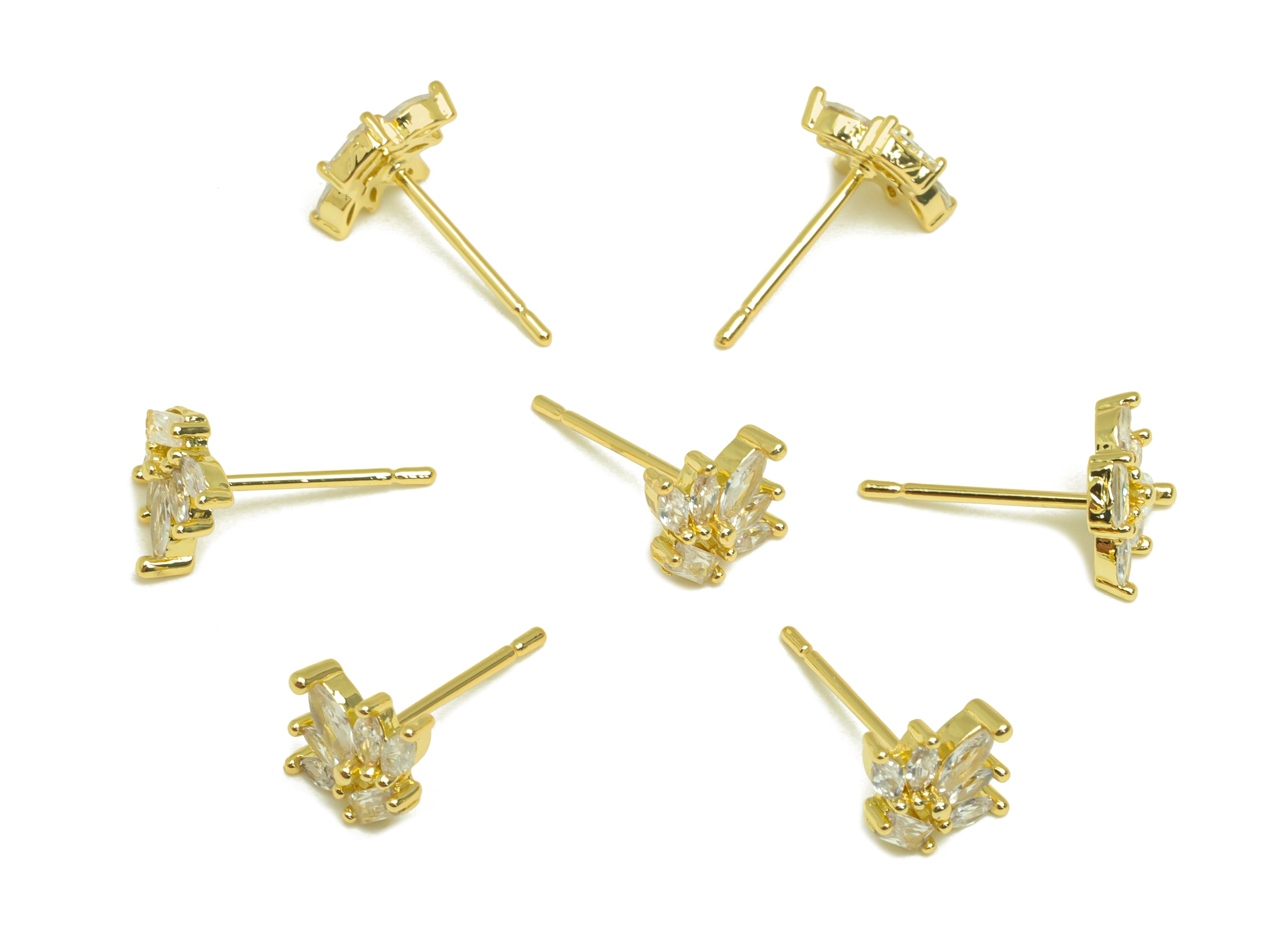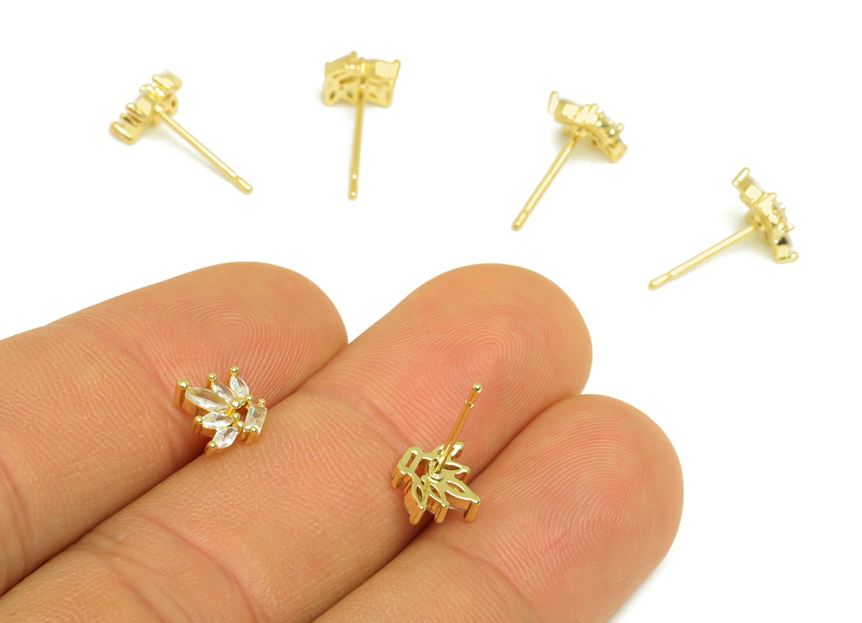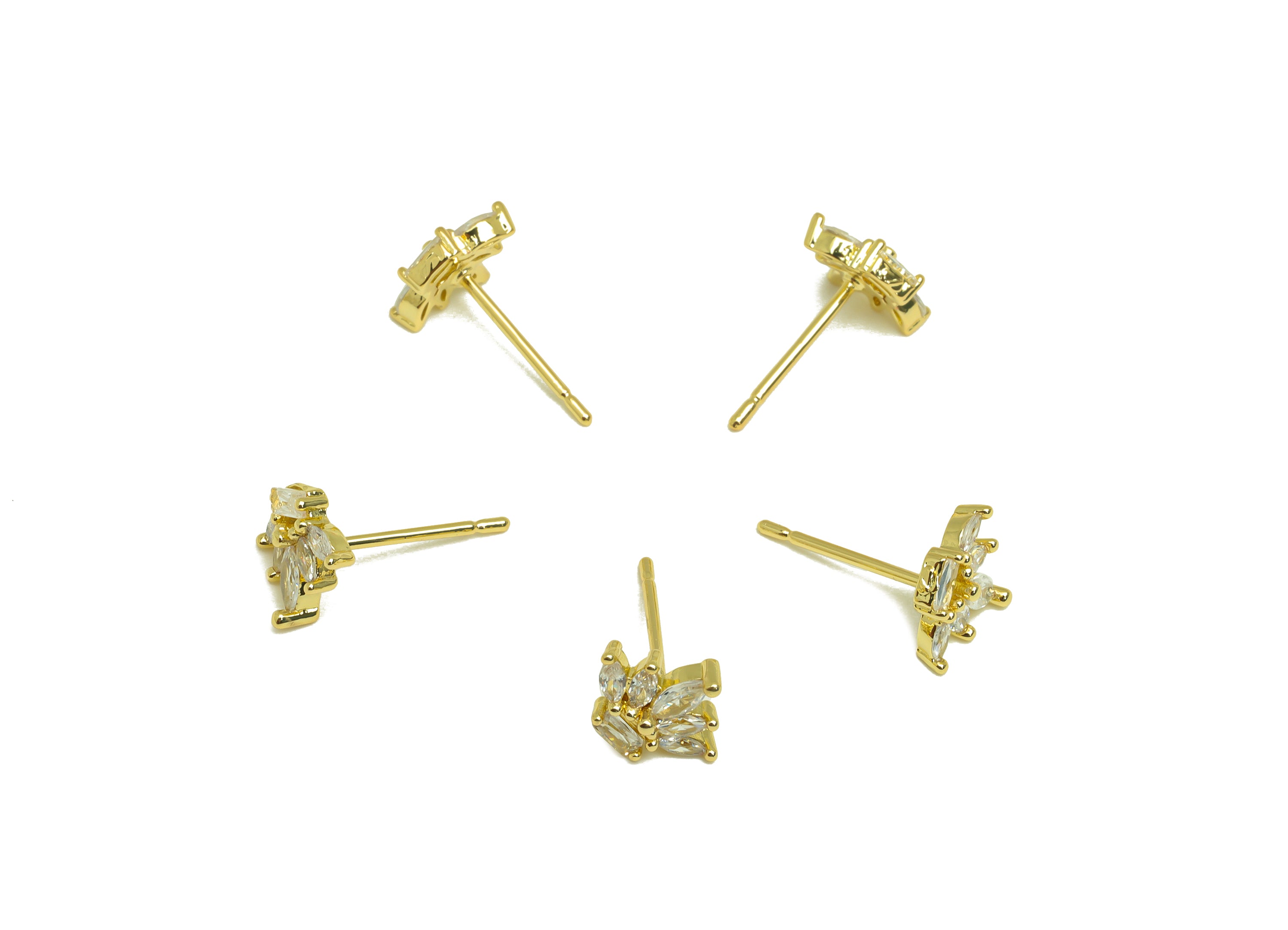 推回式耳钉 - 黄铜 - 方晶锆石 - 316 不锈钢耳钉 - 14k 真金镀层 - 0.9 克 - MJ102768
