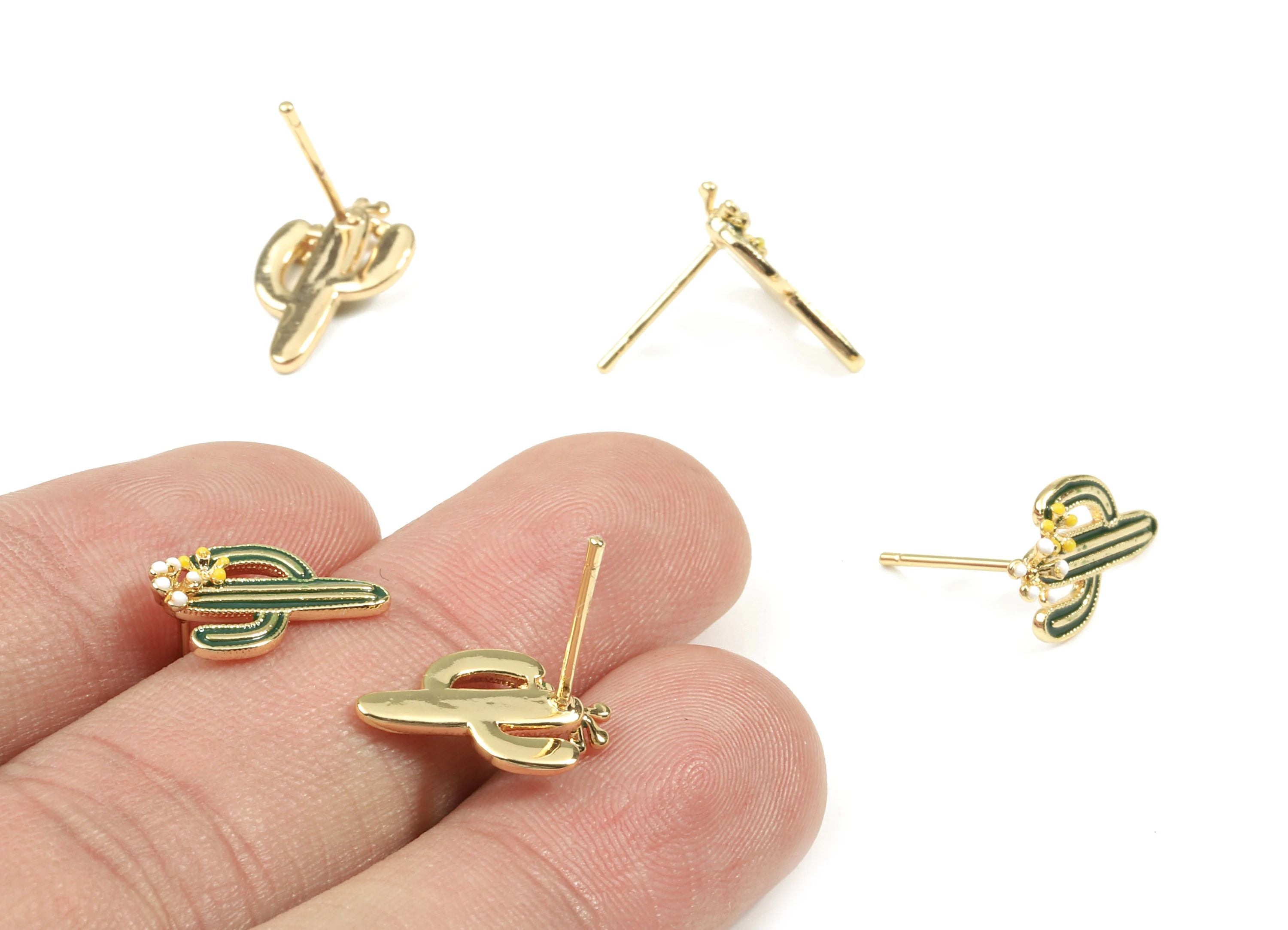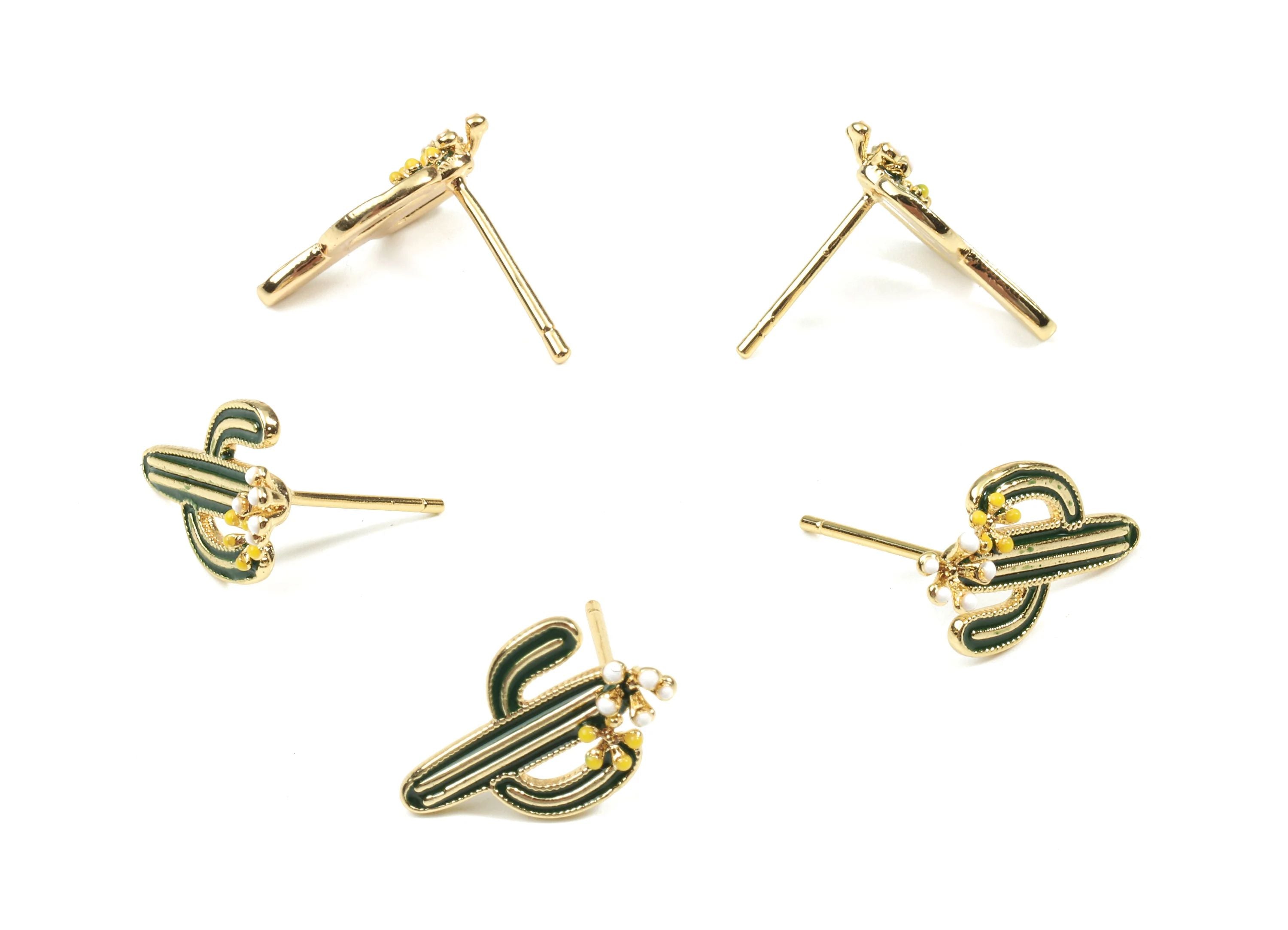 推回式耳钉 - 黄铜 - 珐琅 - S925 银耳钉 - 18K 真金镀层 - 3.5 克 - MJ200607