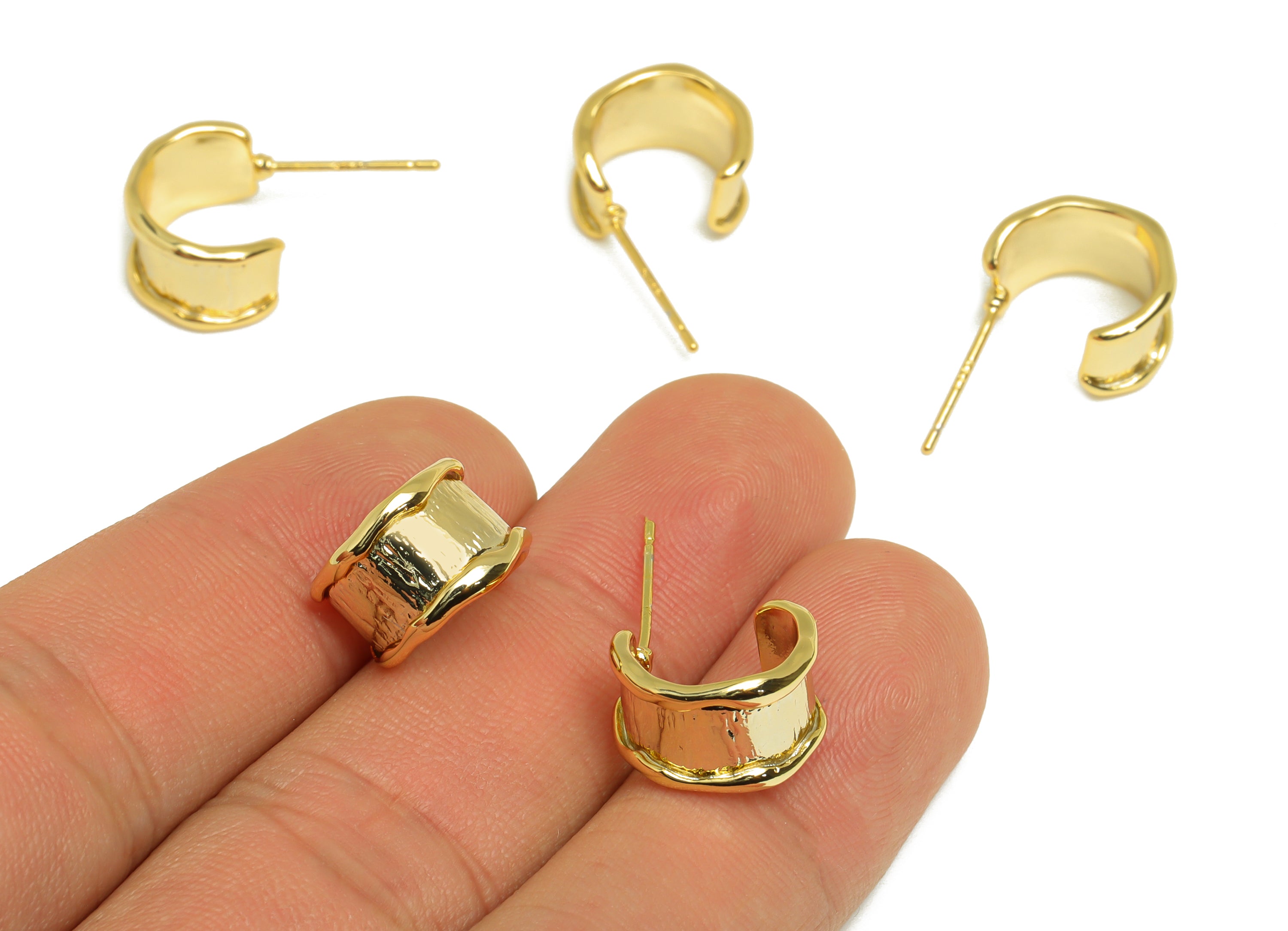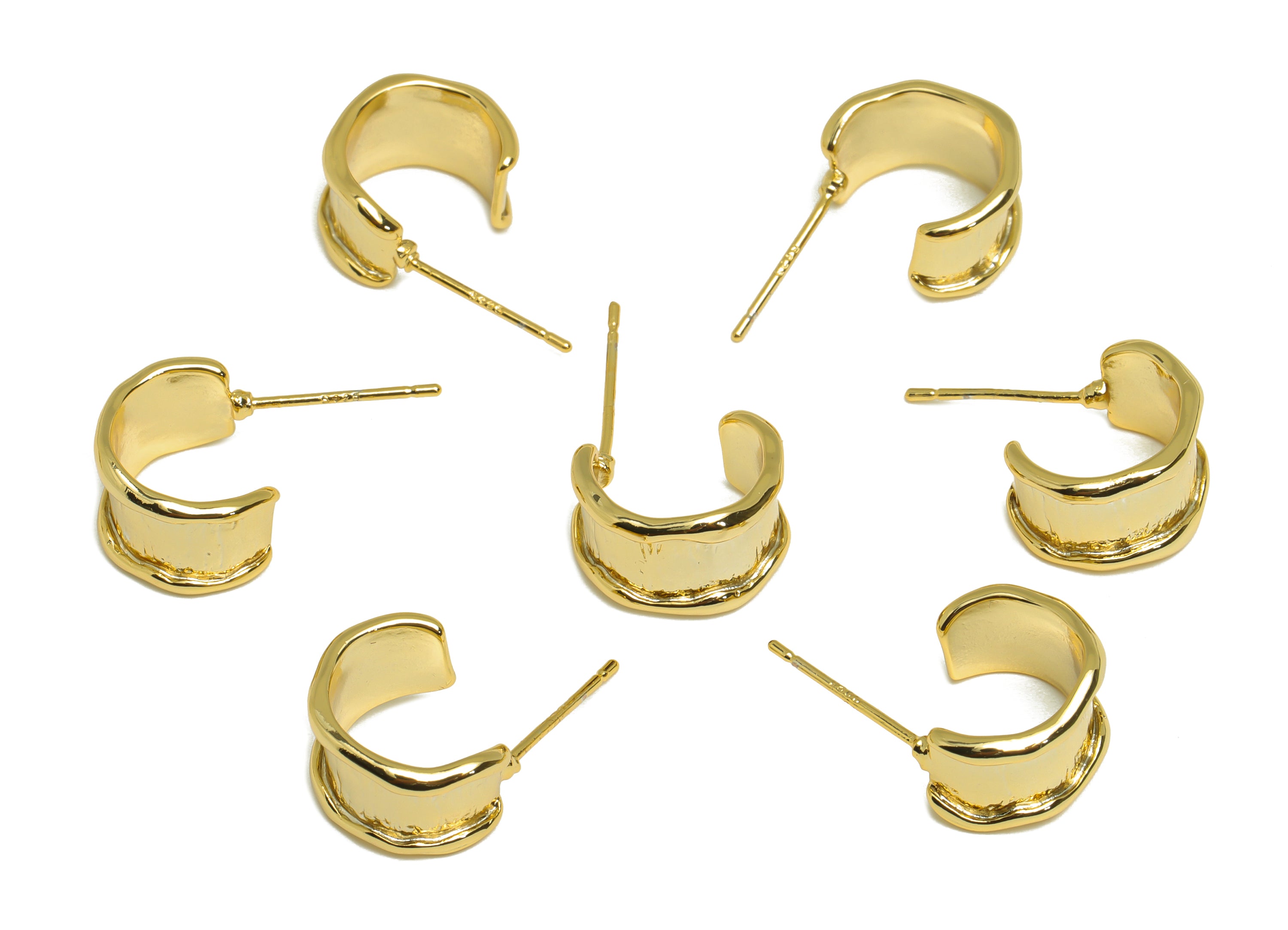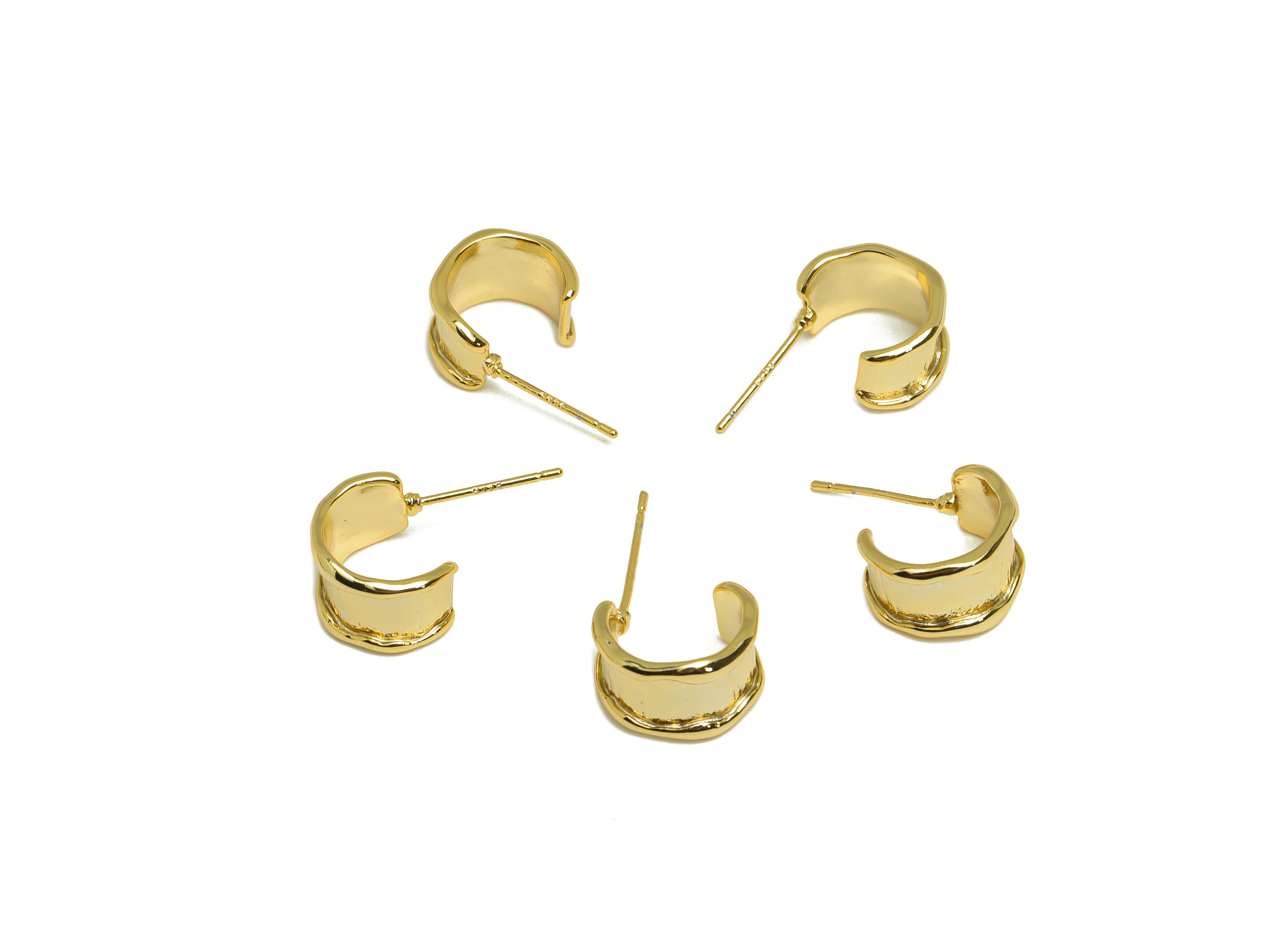 推回式耳钉 - 黄铜 - 仿银针 - 18k 真金镀层 - 5 克 - MJ200650