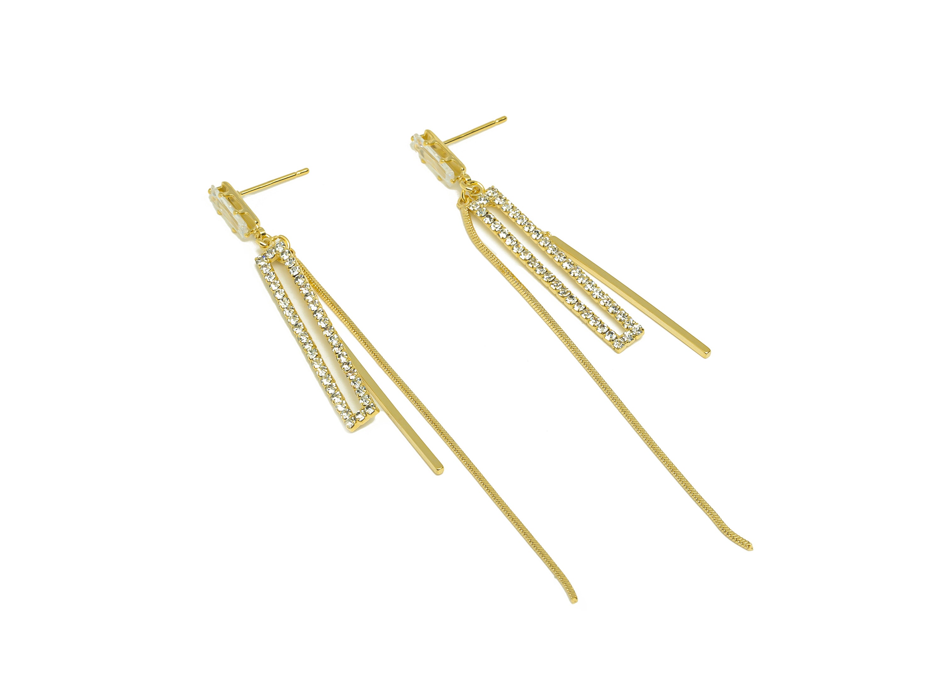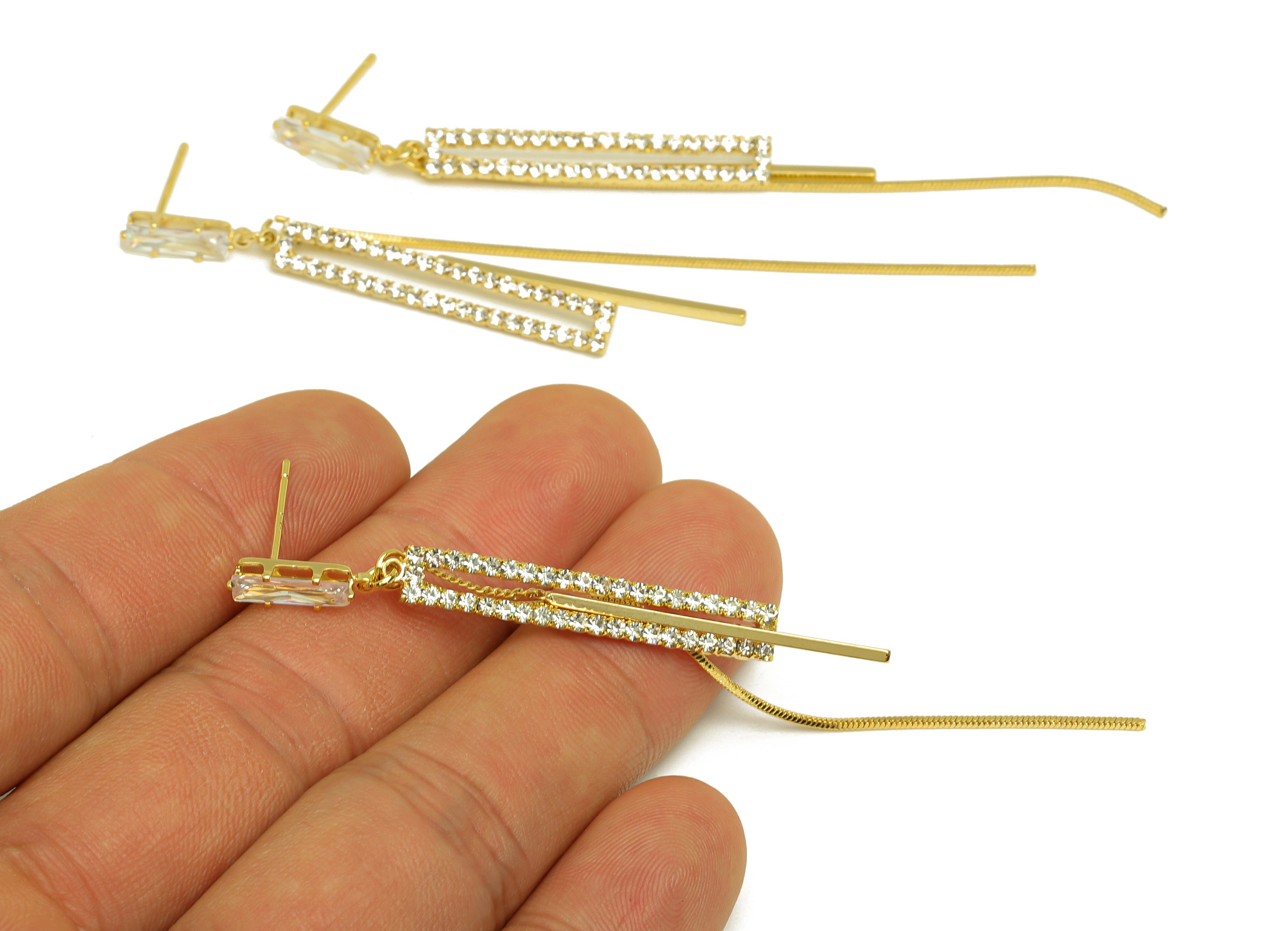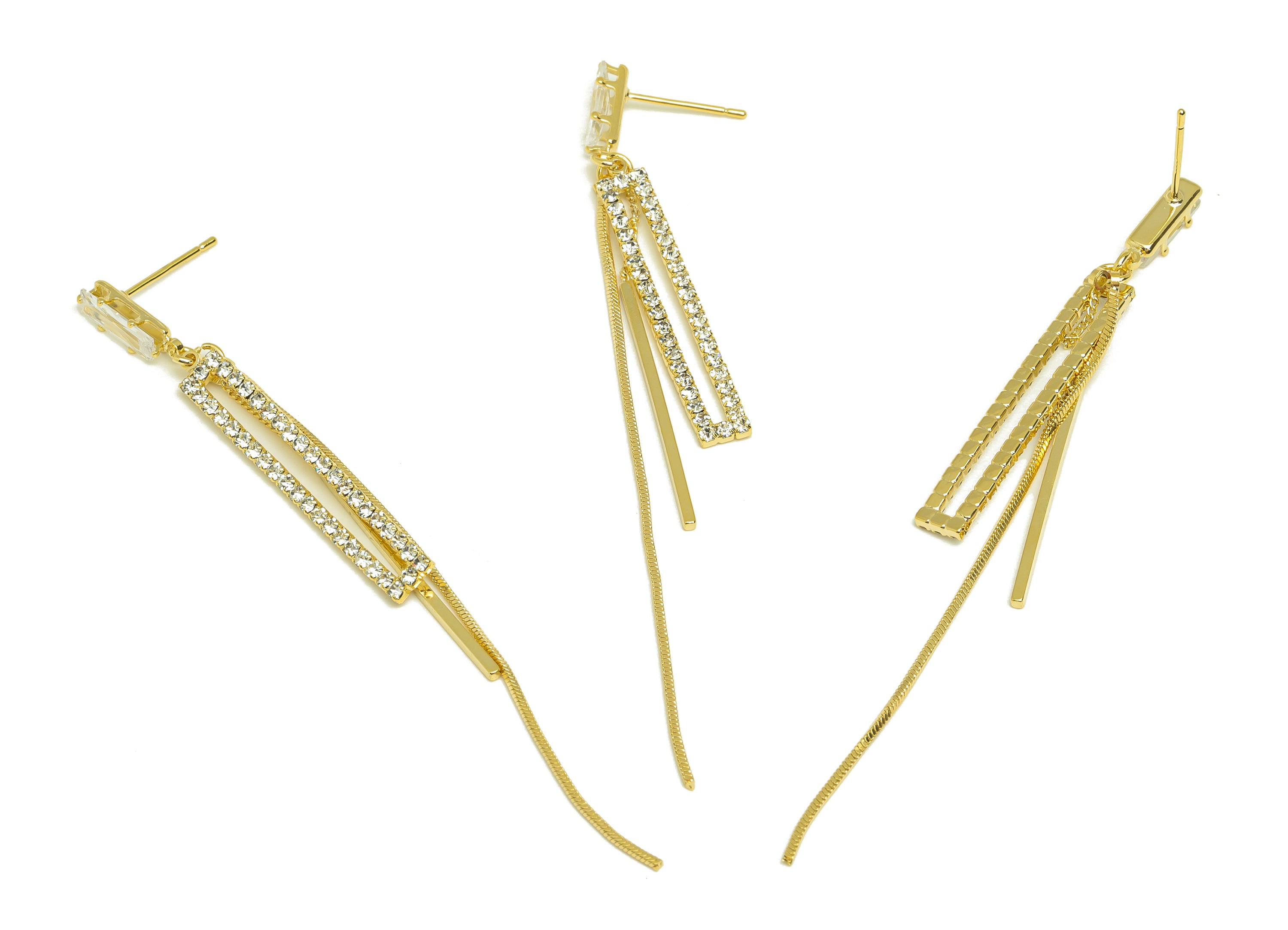 推回式耳钉 - 黄铜 - 仿银耳钉 - 方晶锆石 - 钻石 - 18K 真金镀层 - 4.5 克 - MJ103125