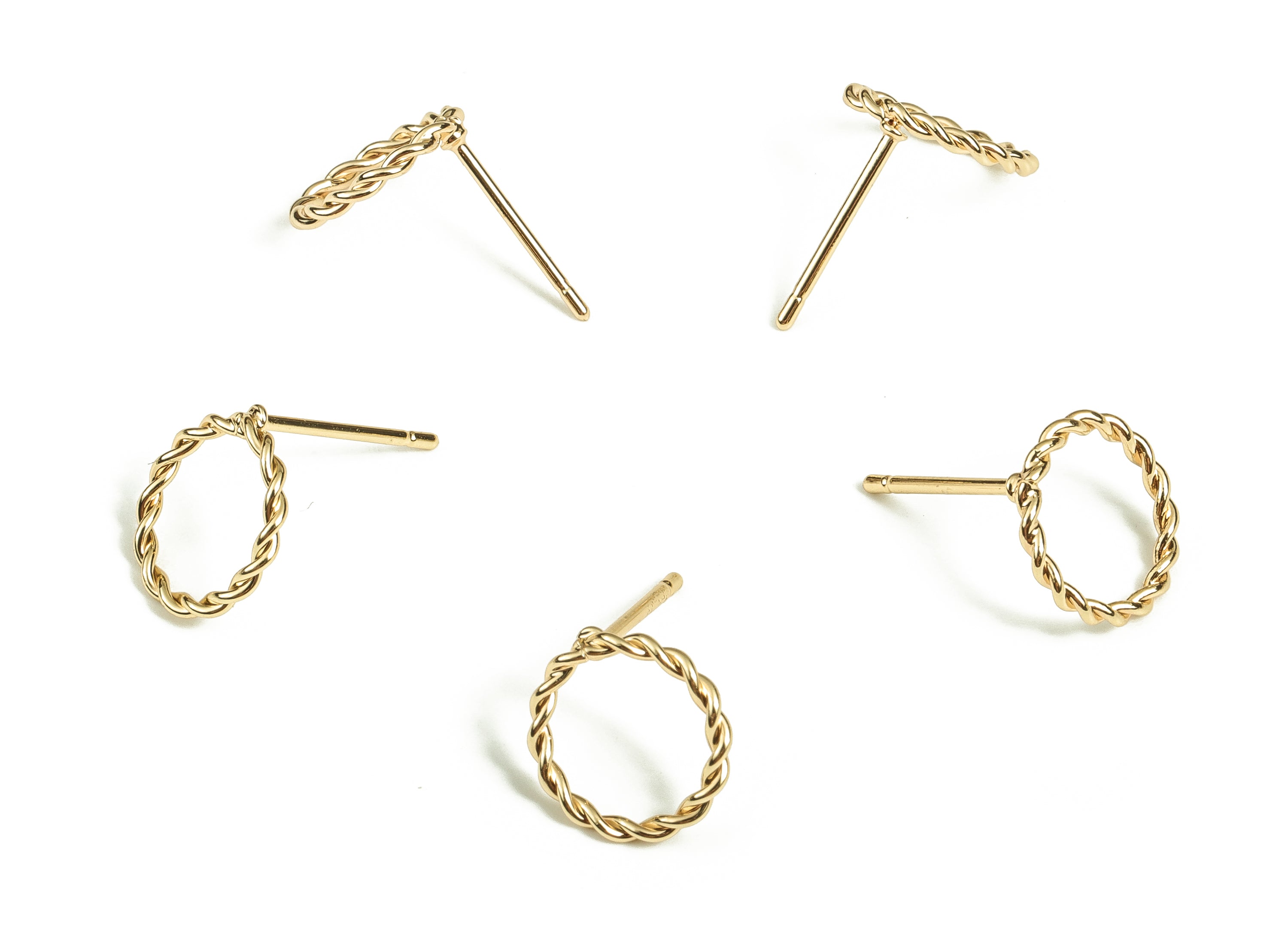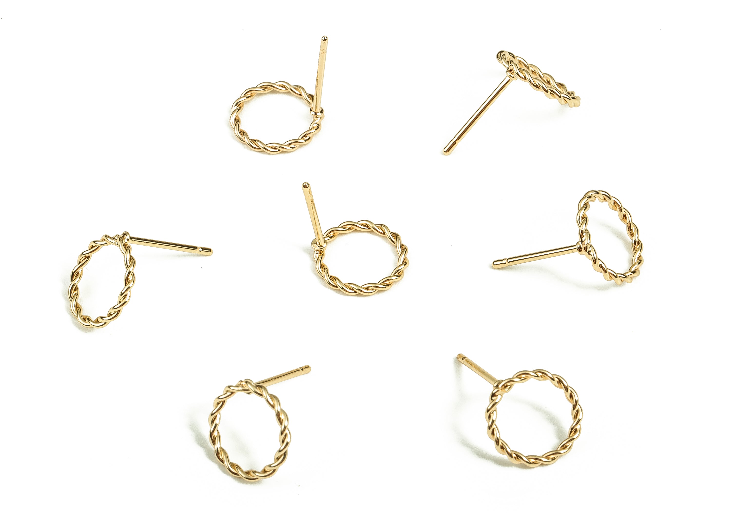 推回式耳钉 - 黄铜 - 不锈钢耳钉 - 18K 真金镀黄铜 - 2.5 克 - MJ201909