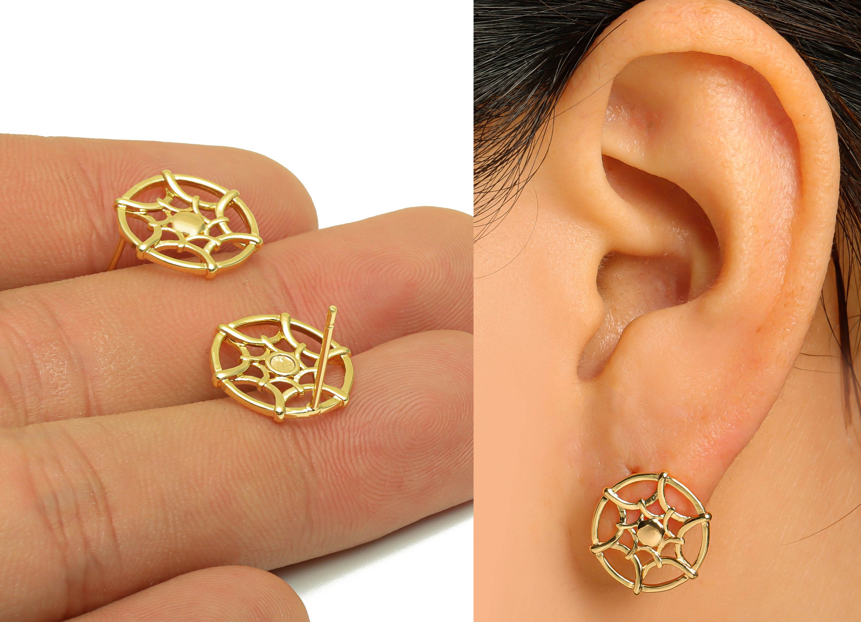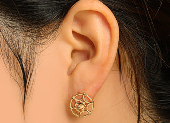 推回式耳钉 - 黄铜 - 不锈钢耳钉 - 18K 真金镀黄铜 - 3.3 克 - MJ201787