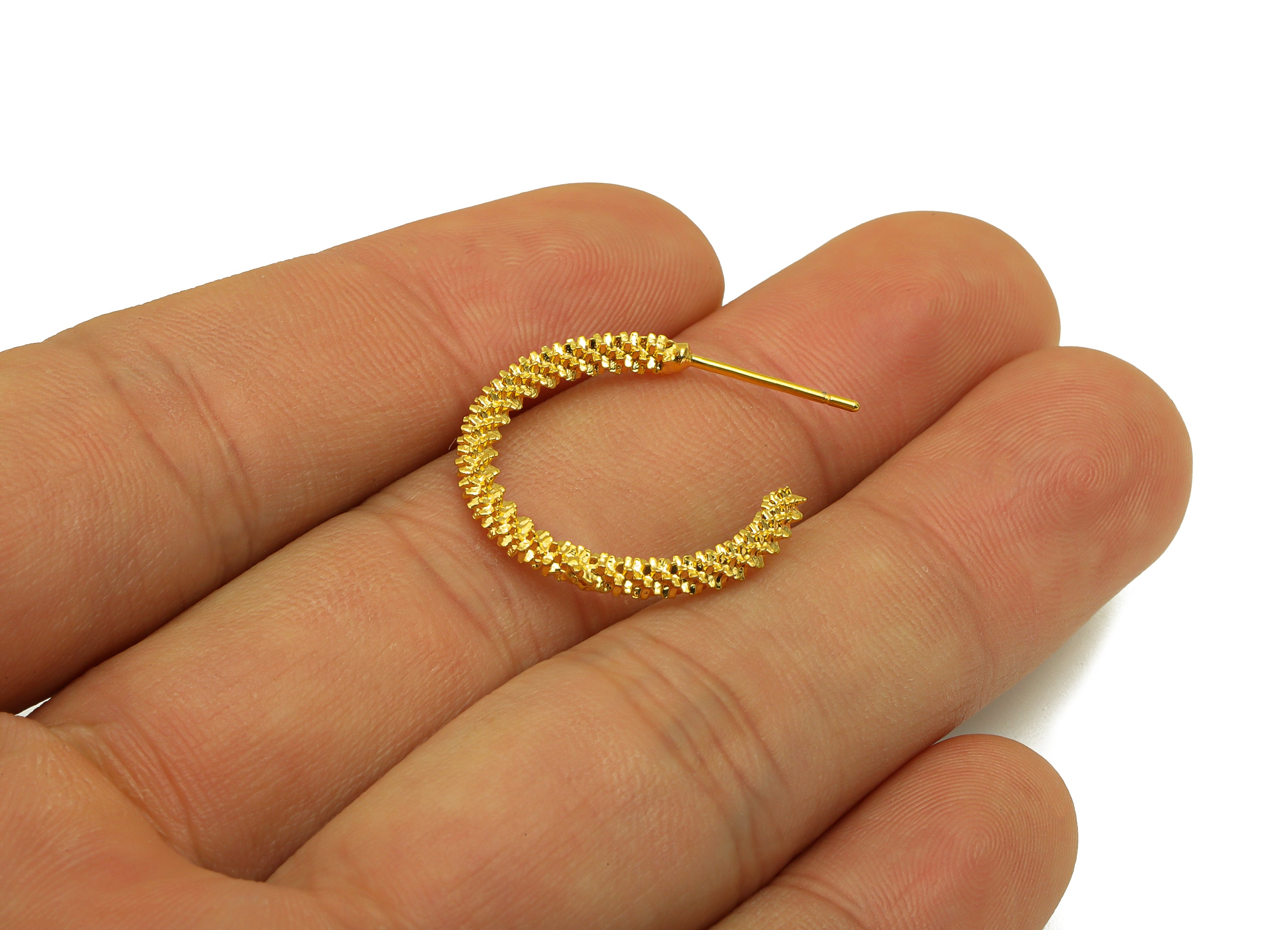 推回式耳钉 - 黄铜 - 不锈钢耳钉 - 18K 真金镀黄铜 - 4.6 克 - MJ201810