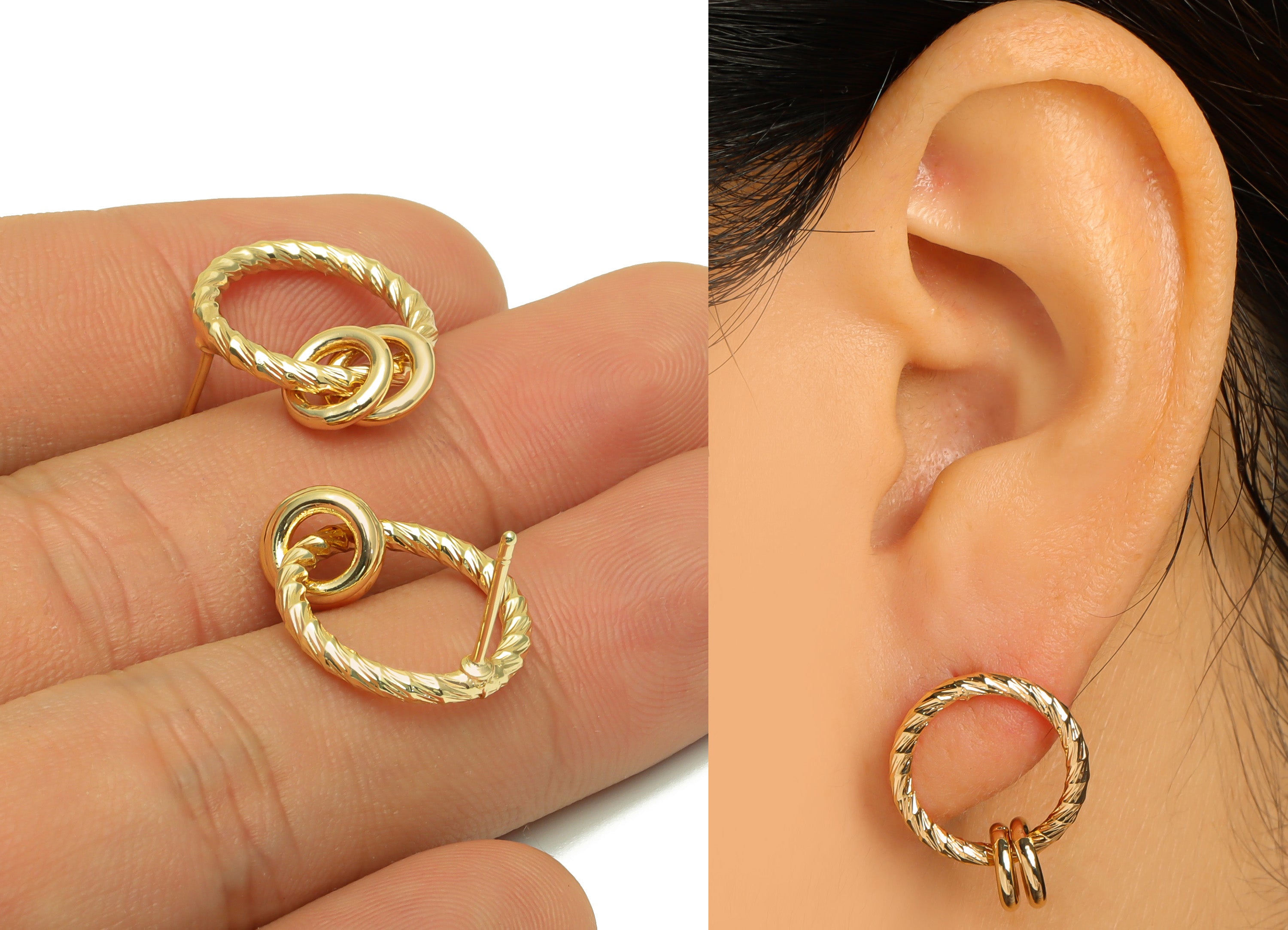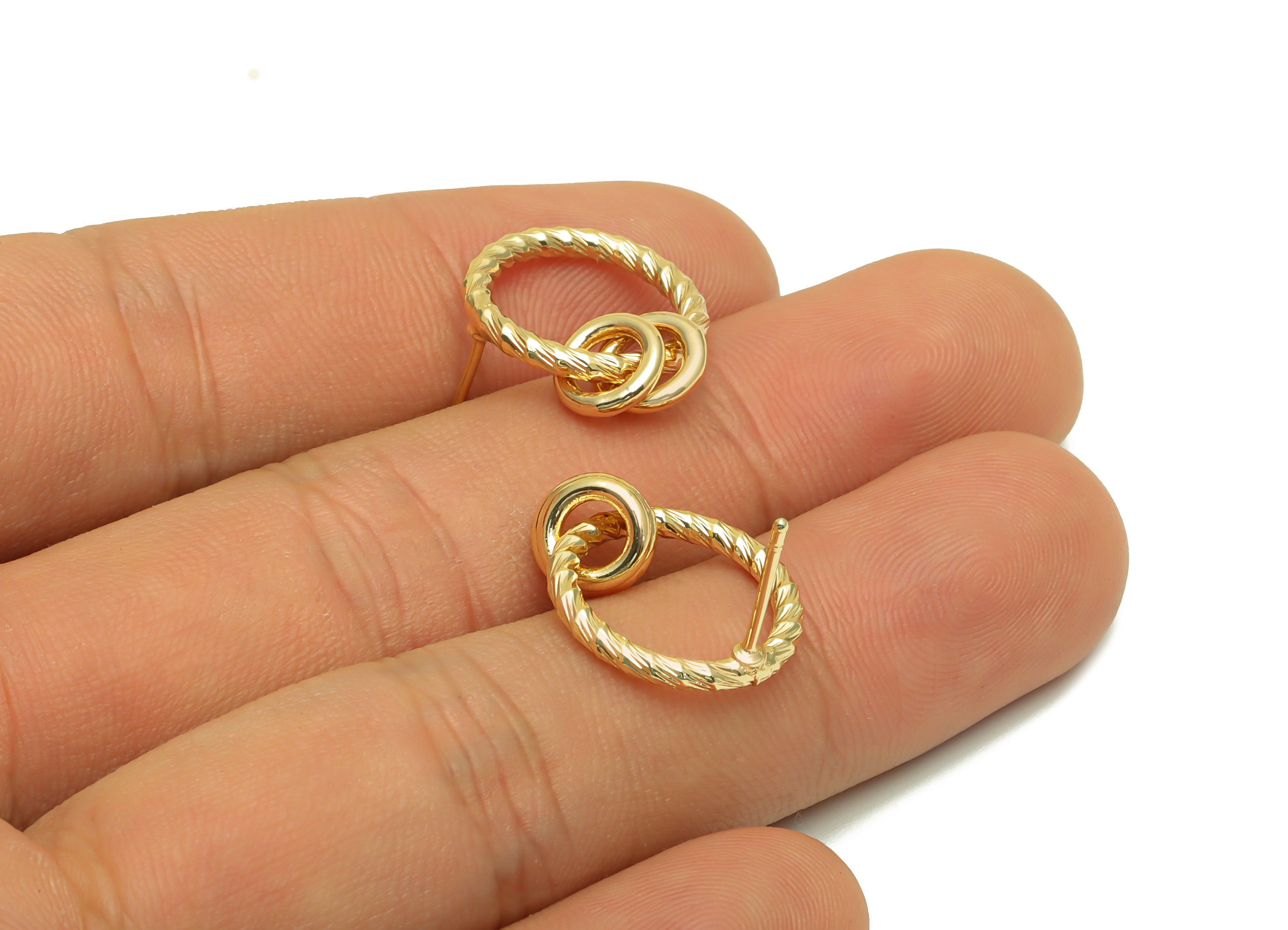 推回式耳钉 - 黄铜 - 不锈钢耳钉 - 18K 真金镀黄铜 - 5.4 克 - MJ201775