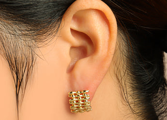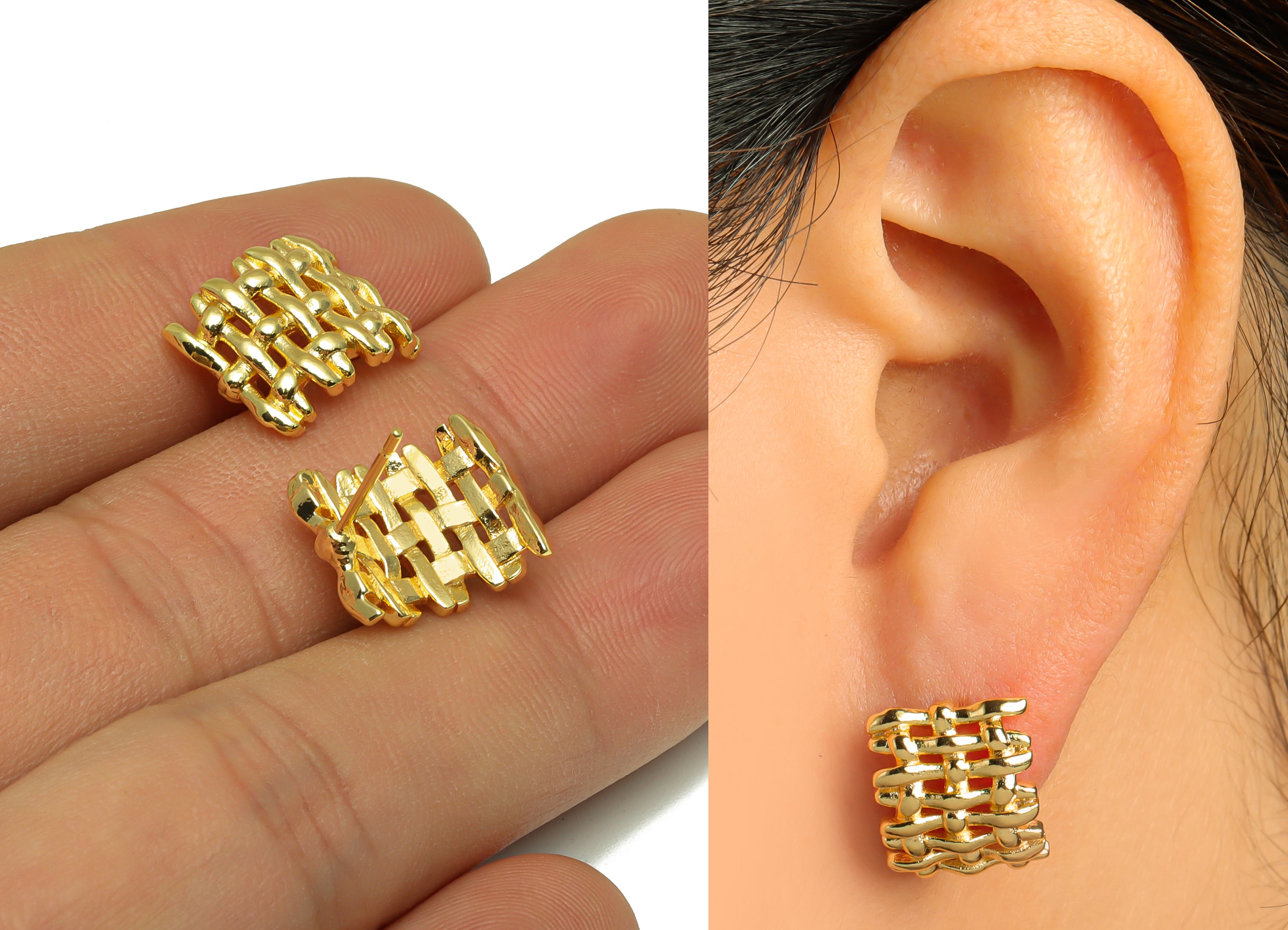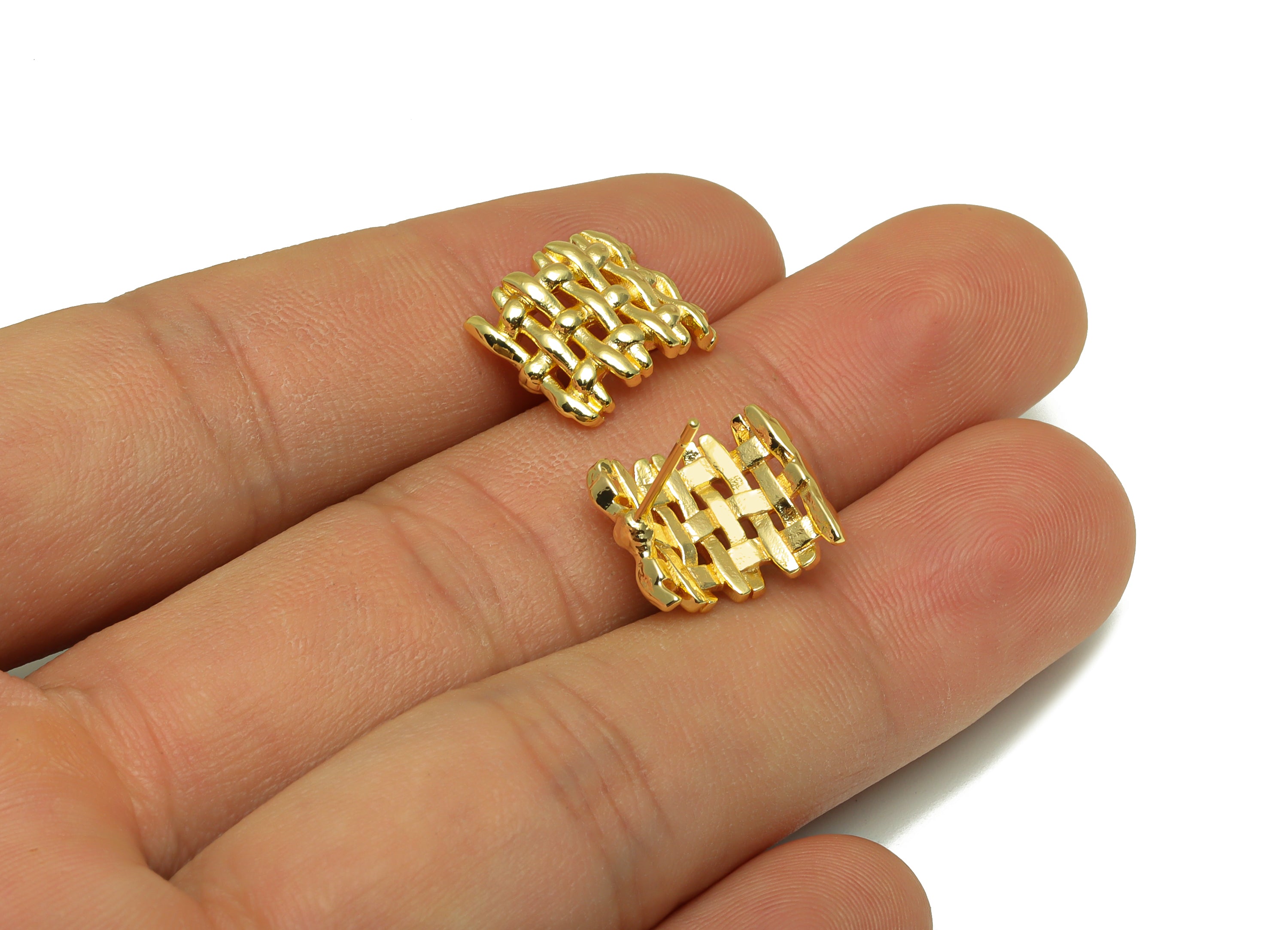 推回式耳钉 - 黄铜 - 不锈钢耳钉 - 18K 真金镀黄铜 - 5.9 克 - MJ201781
