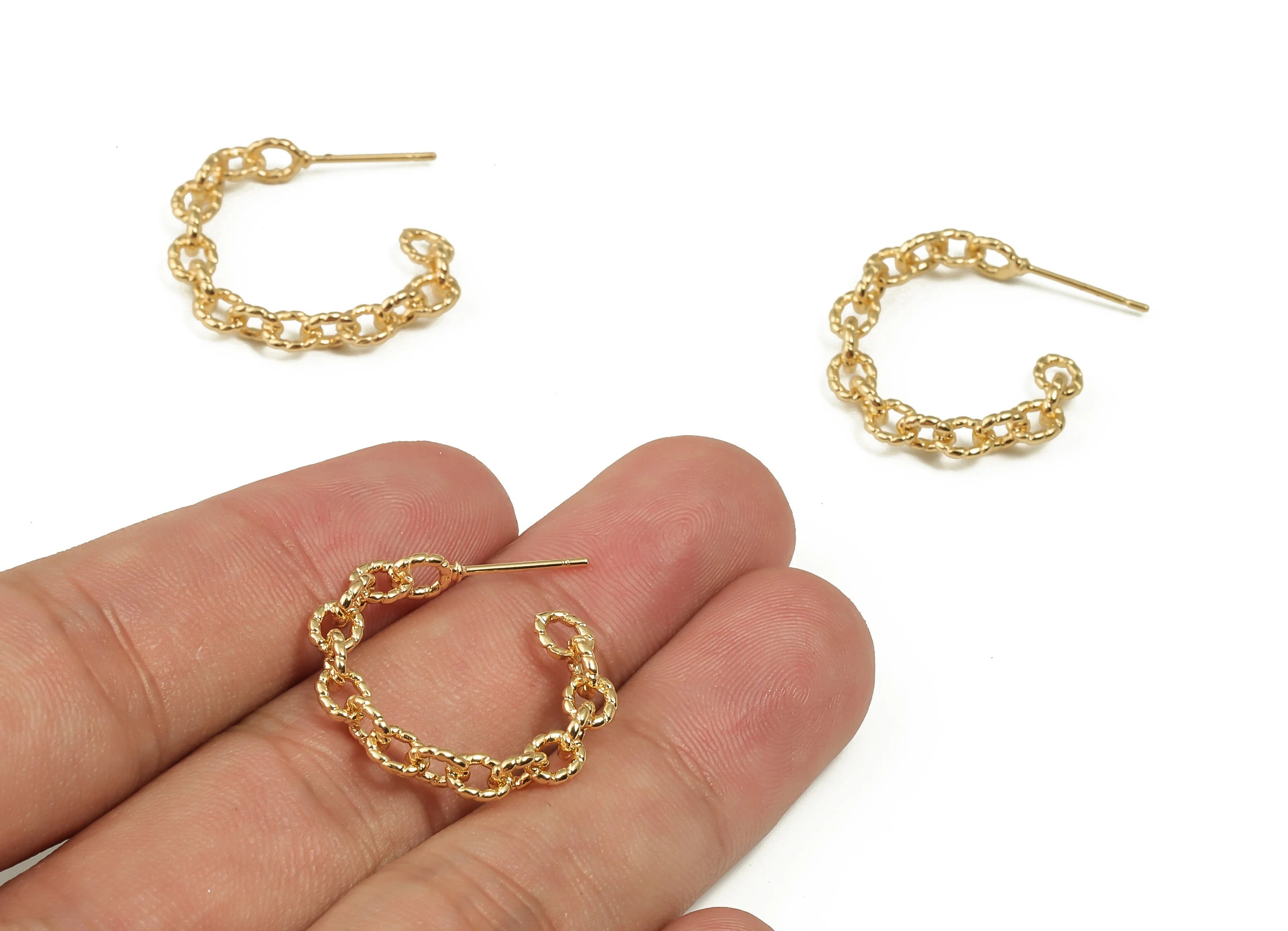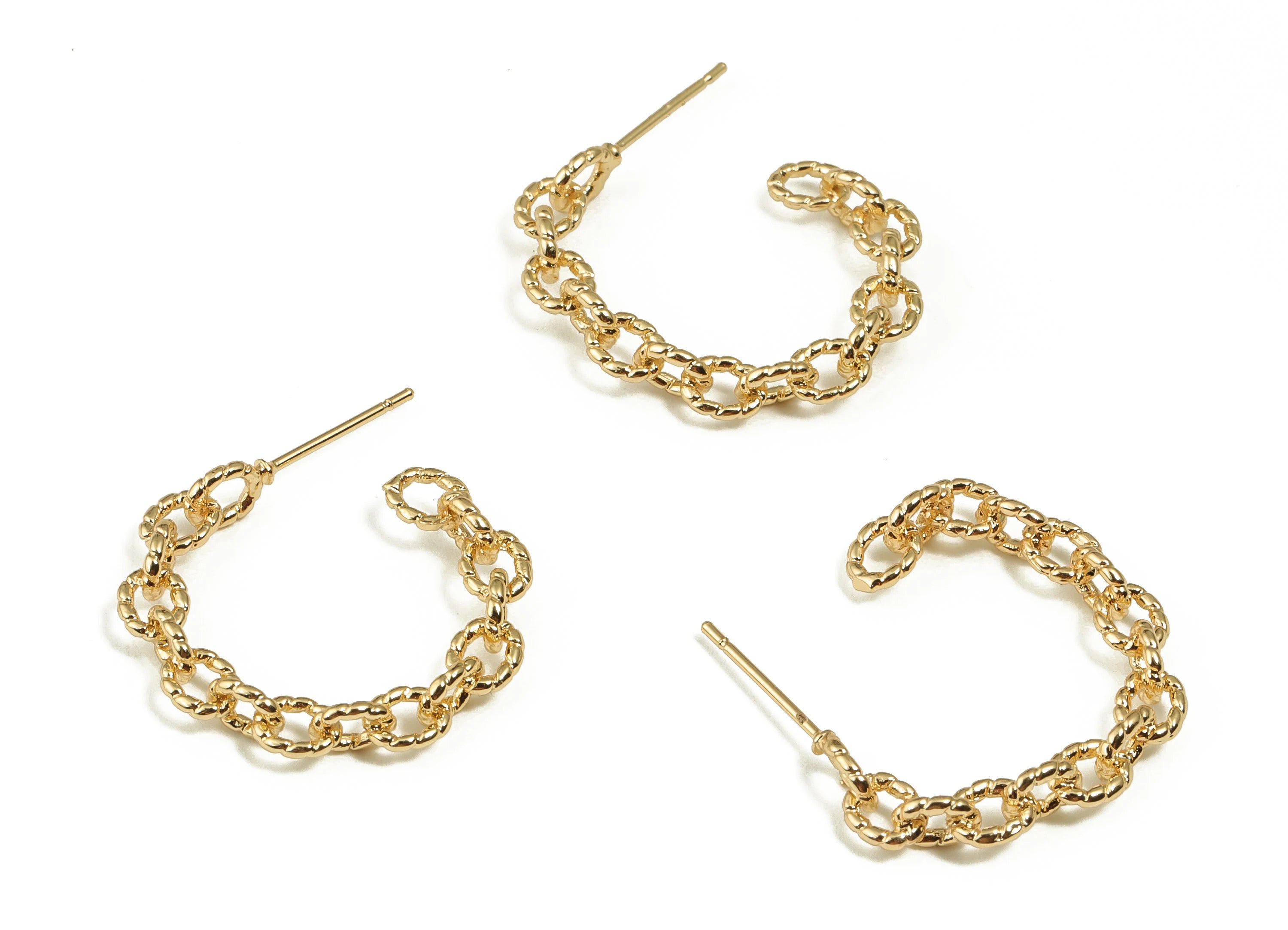 推回式耳钉 - 黄铜 - 不锈钢耳钉 - 18K 真金镀黄铜 - 5 克 - MJ201796