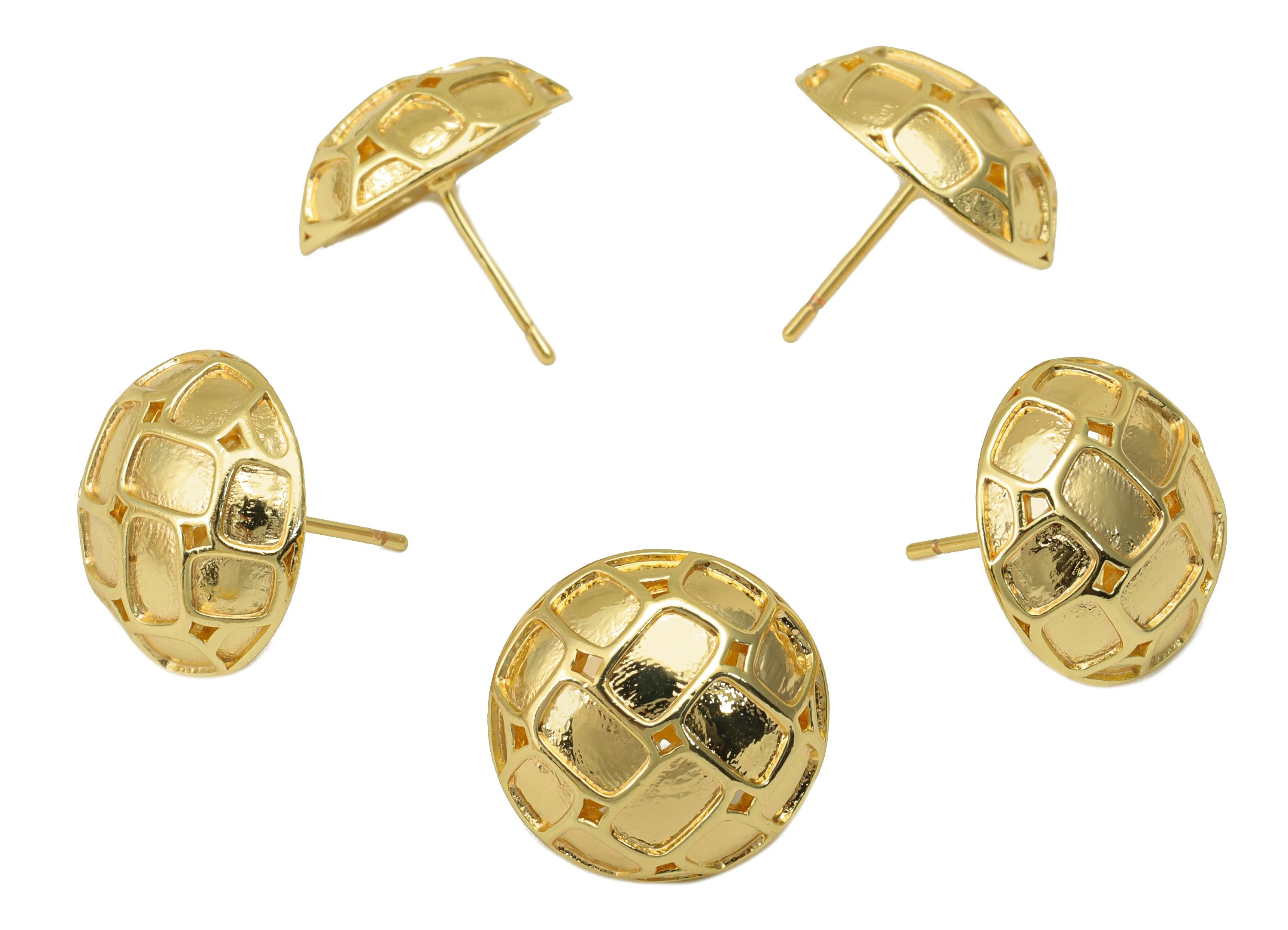 推回式耳钉 - 黄铜 - 不锈钢耳钉 - 18K 真金镀黄铜 - 6.7 克 - MJ200645