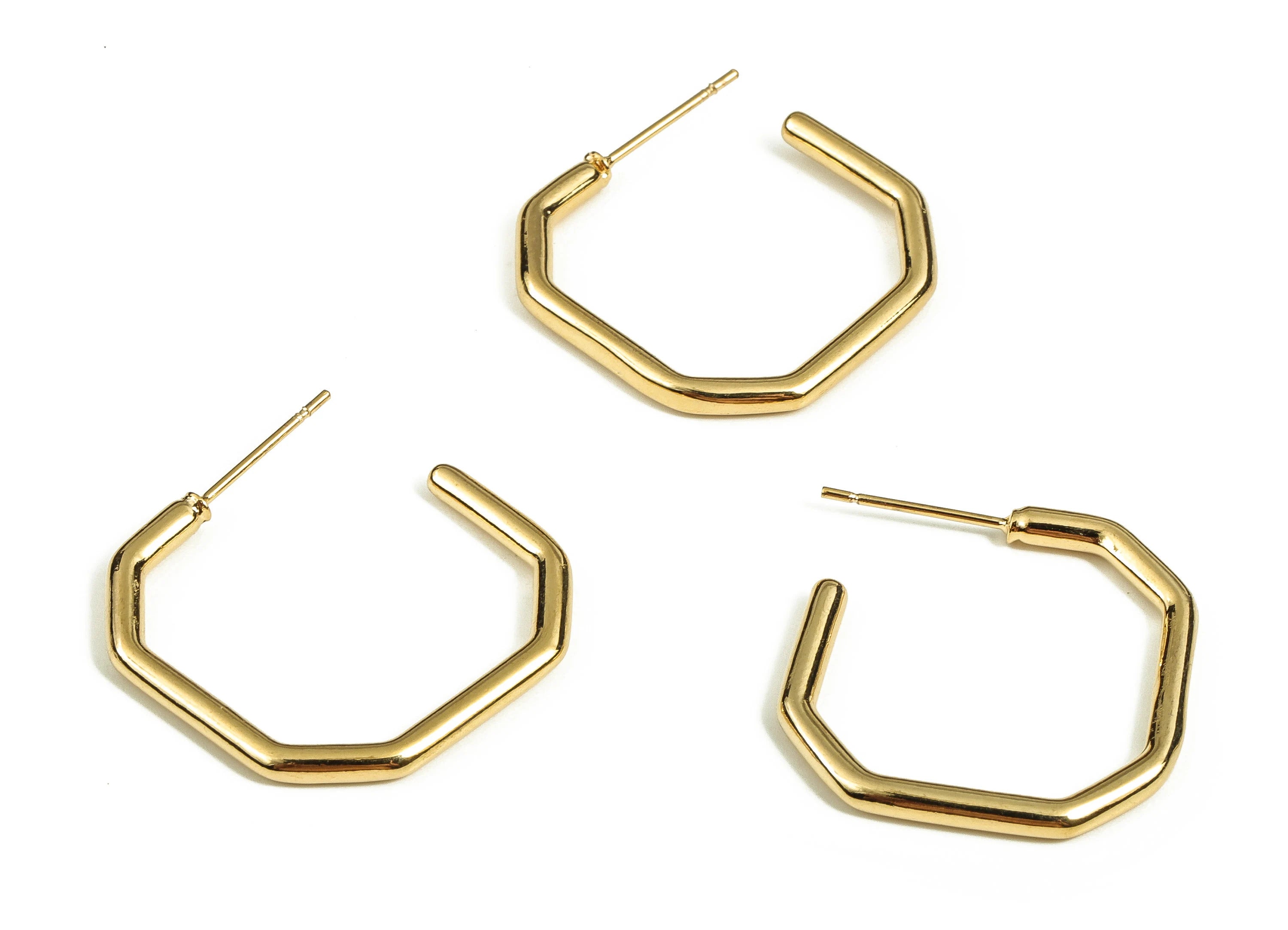 推回式耳钉 - 黄铜 - 不锈钢耳钉 - 18K 真金镀黄铜 - 6.9 克 - MJ201780