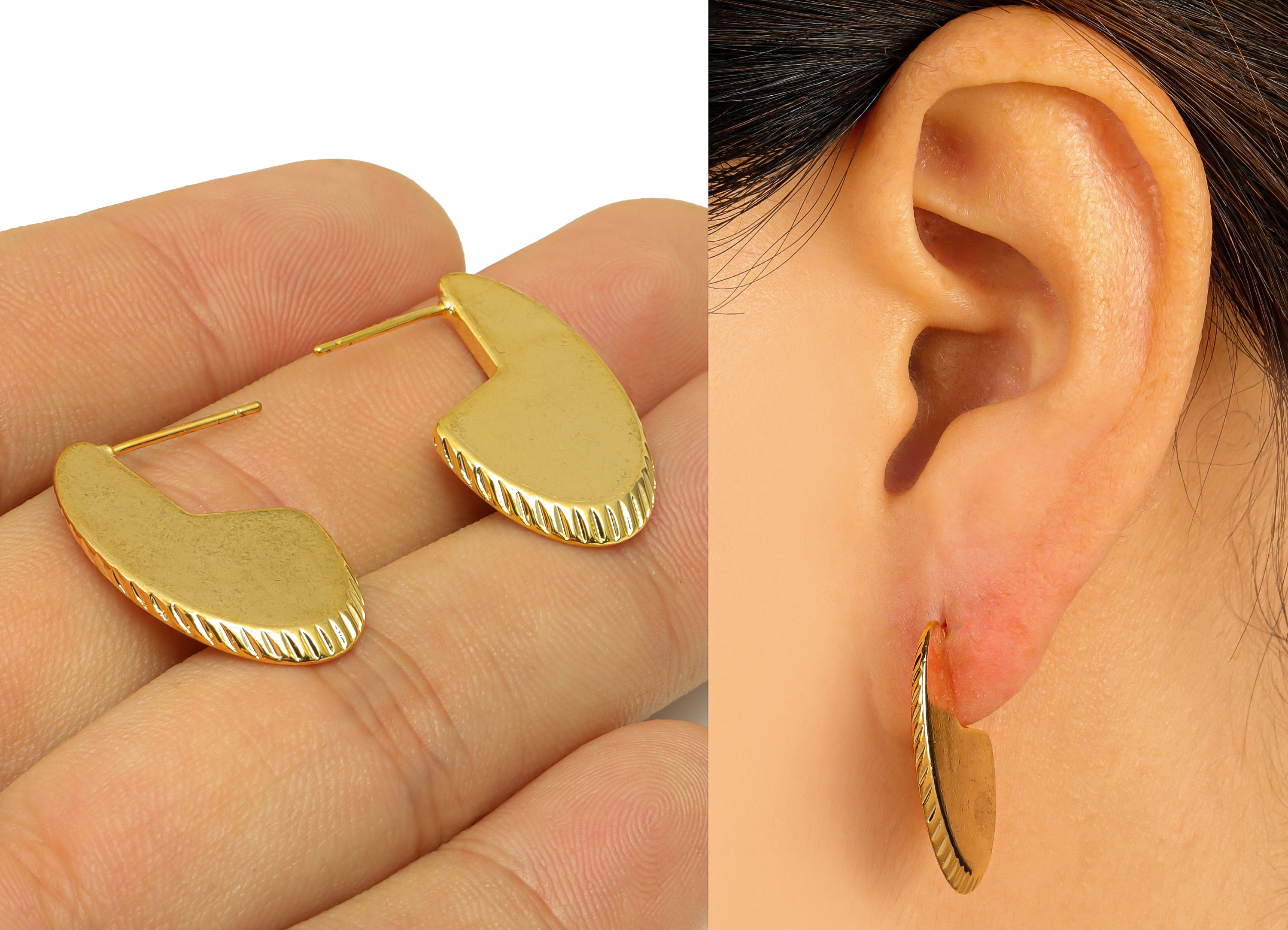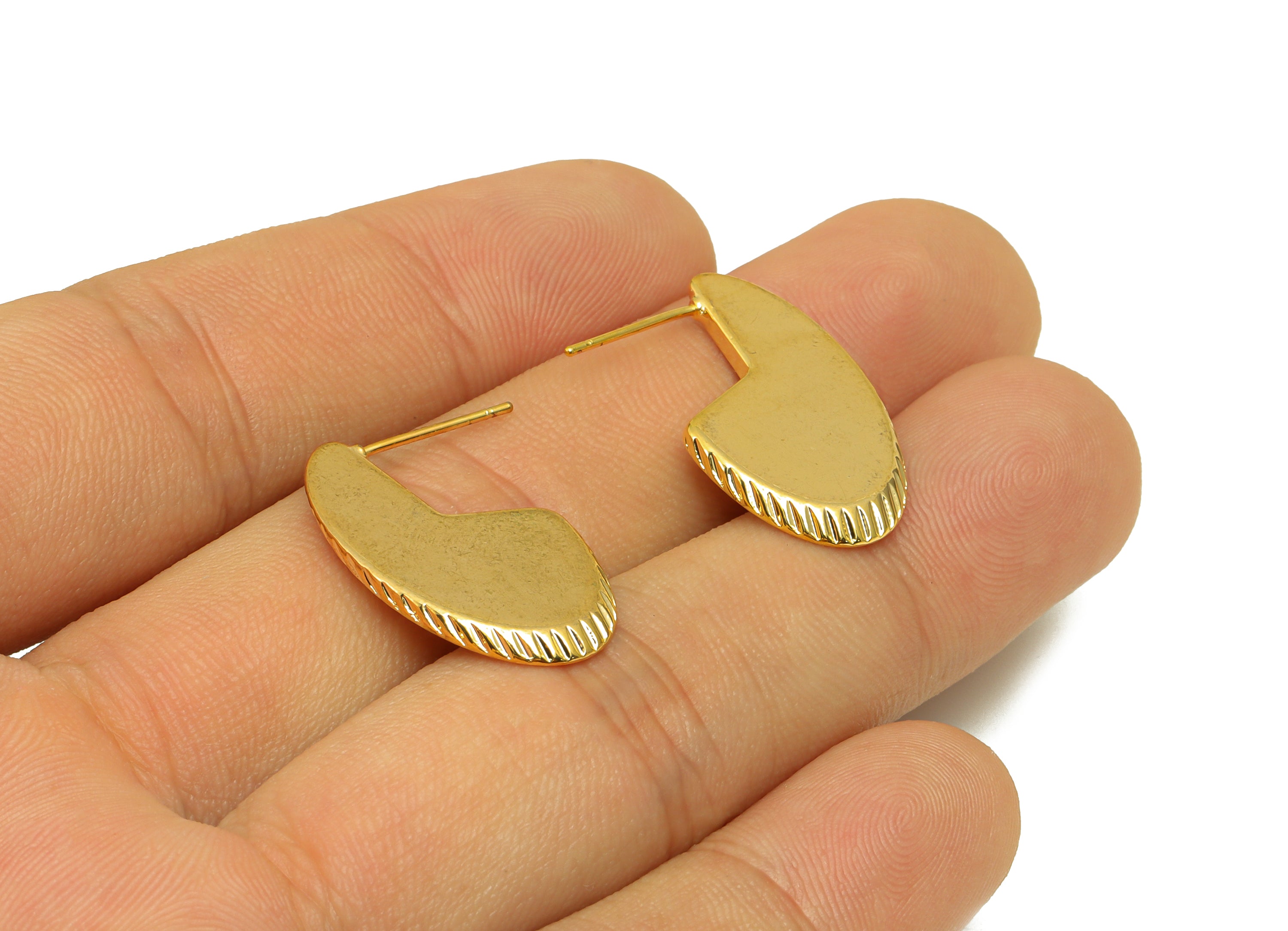 推回式耳钉 - 黄铜 - 不锈钢耳钉 - 18K 真金镀黄铜 - 9.1 克 - MJ201915