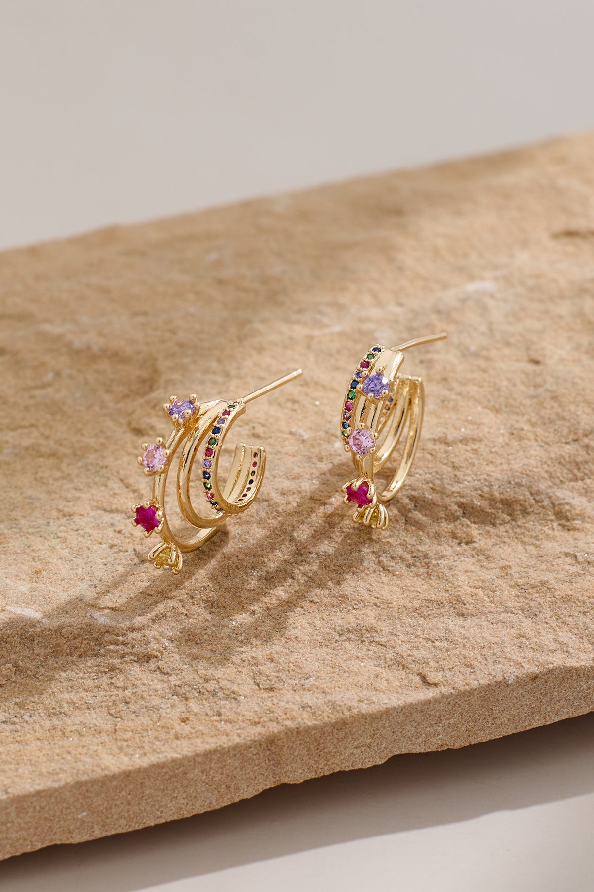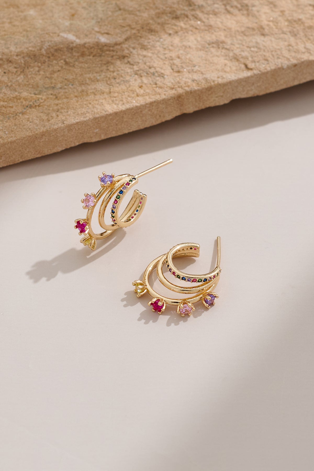 推回式耳钉 - 黄铜 - 锆石 - 18K 真金镀黄铜 - 5.1克 - MJ105724