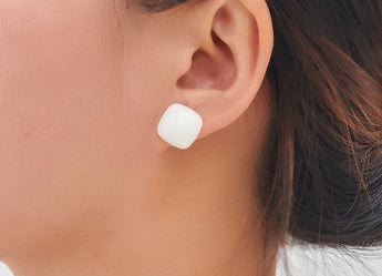 推回式耳钉 - 树脂 - 316 不锈钢耳钉 - 白色 - 2.4 克 - MJ102995
