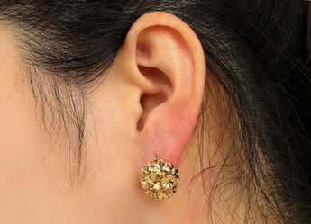 推回式耳钉 - 黄铜 - 316 不锈钢耳钉 - 18K 真金镀层 - 6.2 克 - MJ200611