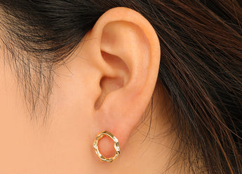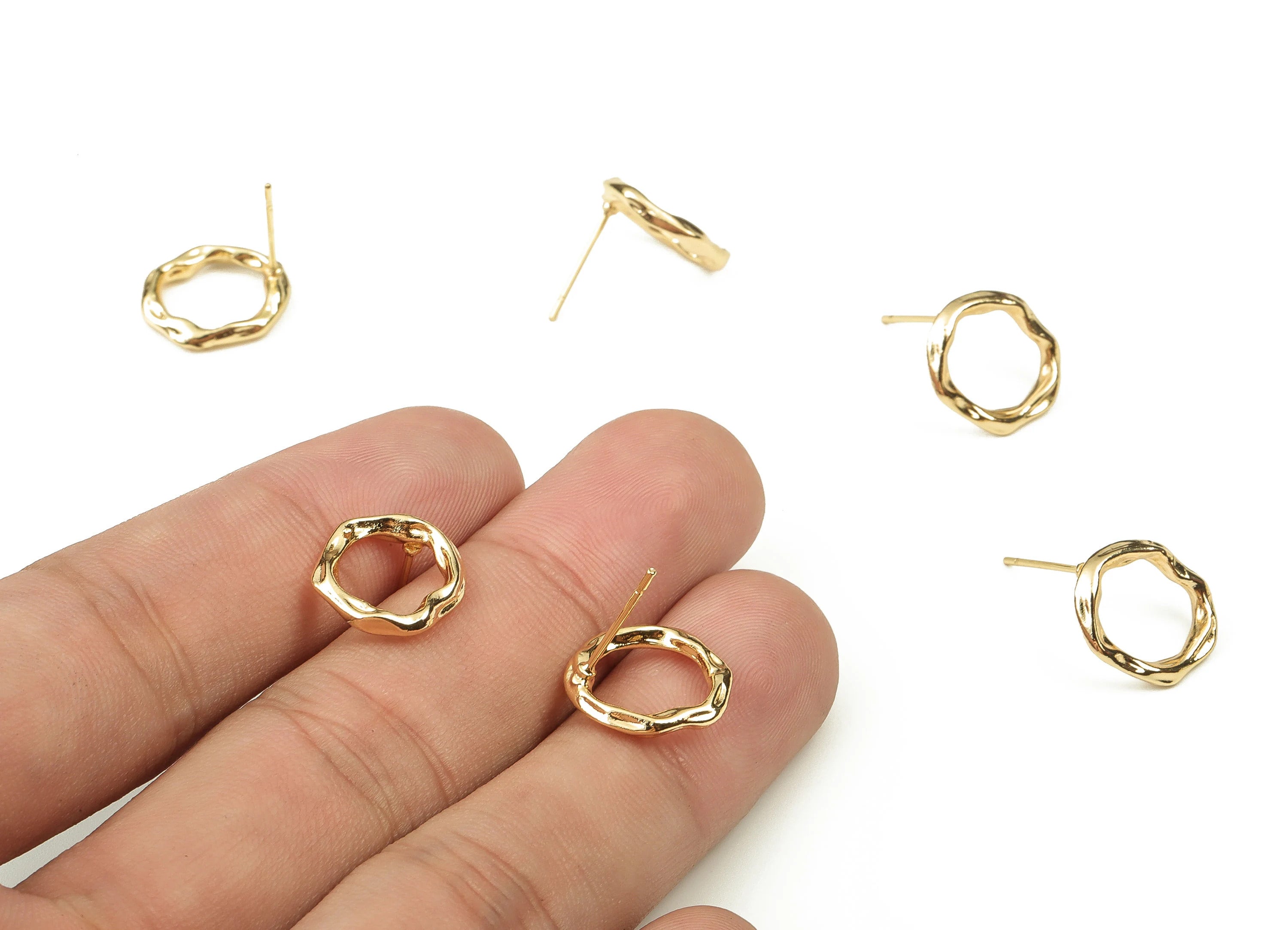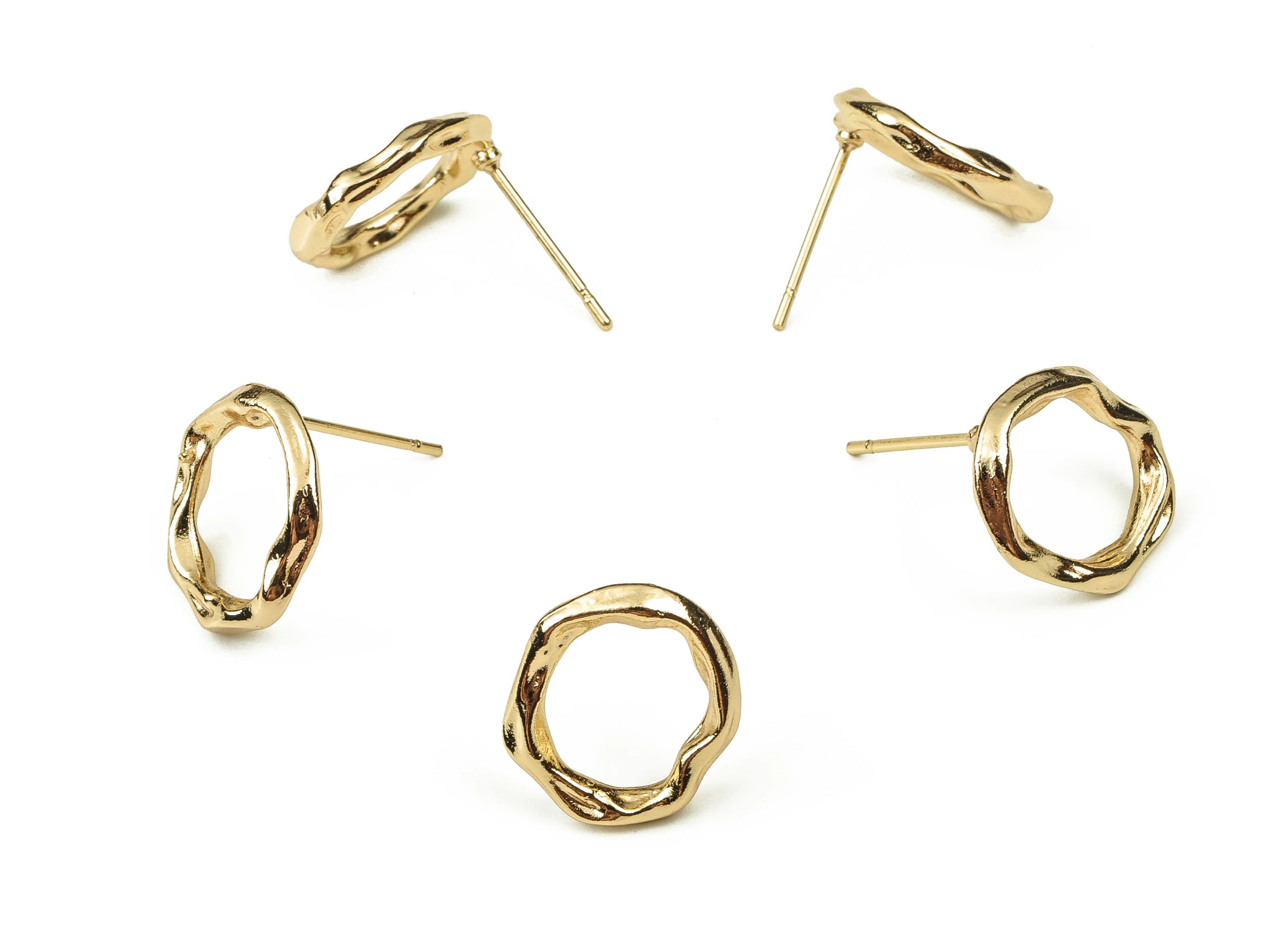 推回式耳钉 - 黄铜 - 不锈钢耳钉 - 18K 真金镀黄铜 - 3.9 克 - MJ200300