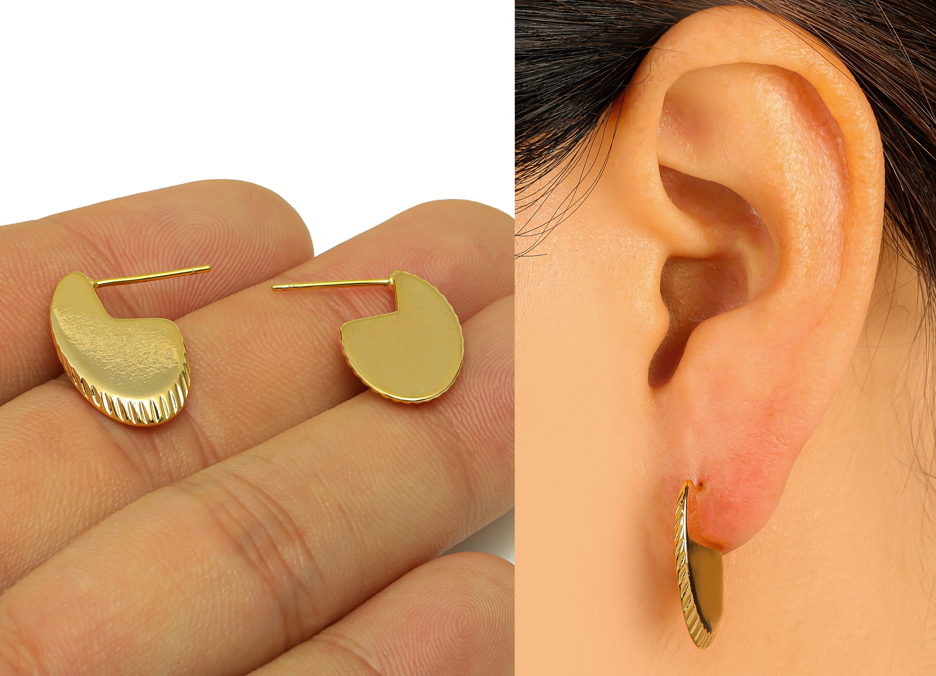 推回式耳钉 - 黄铜 - 不锈钢耳钉 - 18K 真金镀黄铜 - 6.7 克 - MJ201820