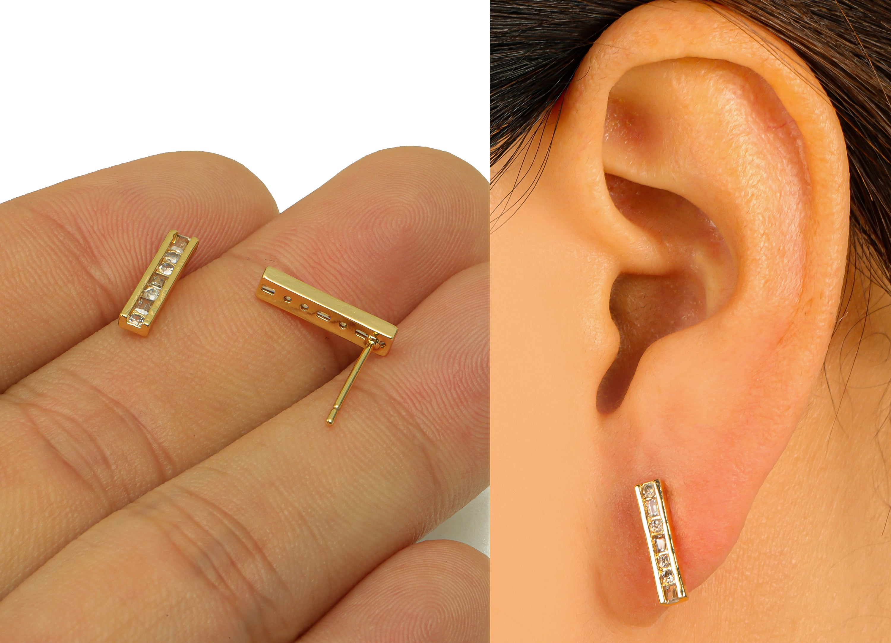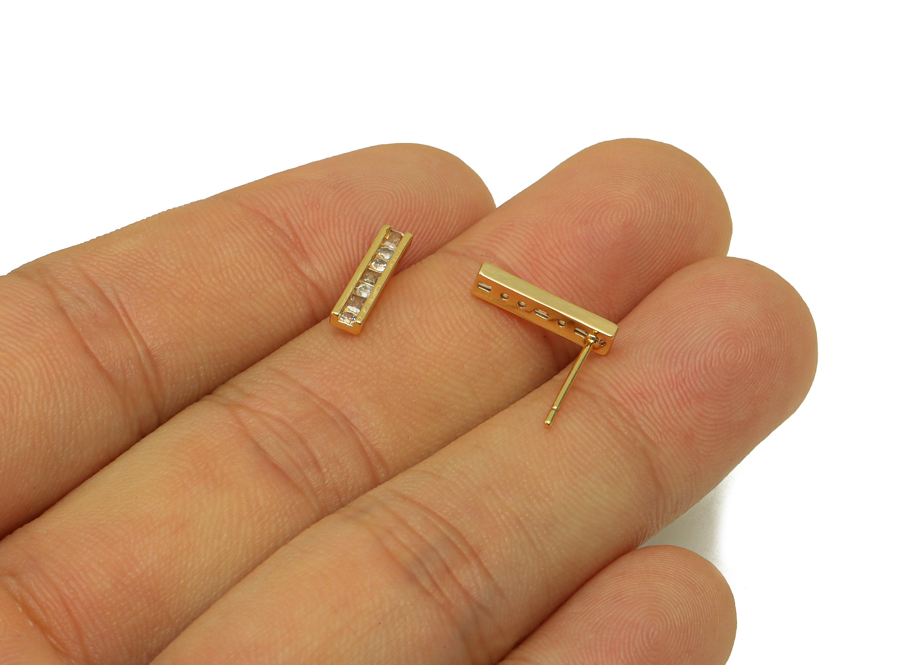 推回式耳钉 - 黄铜 - 锆石 - 925 银针 - 18k 真金镀黄铜 - 2.97 克 - MJ201162