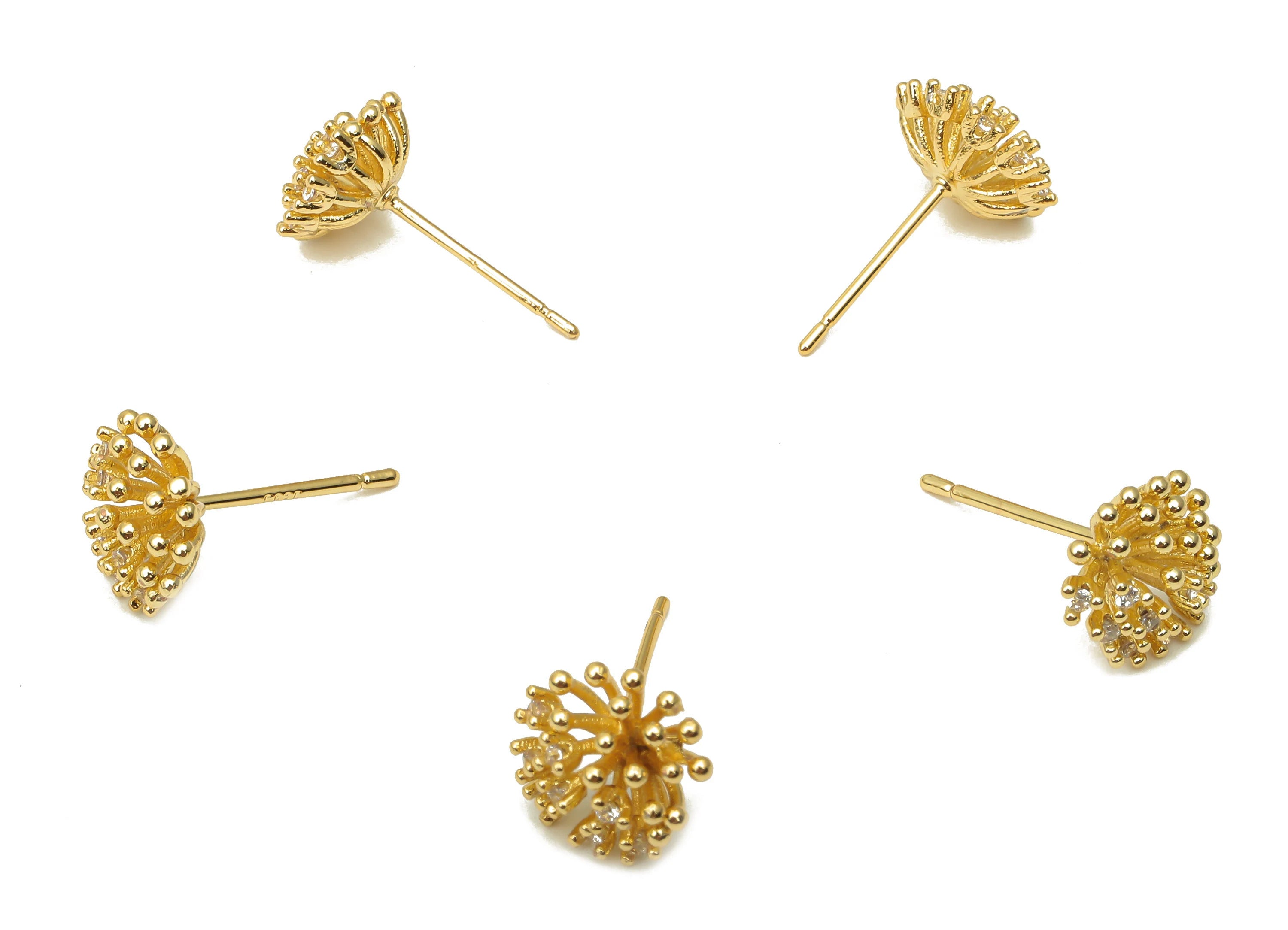 推回式耳钉 - 黄铜 - 锆石 - 925 银耳钉 - 18k 真金镀黄铜 - 3.38 克 - MJ201169