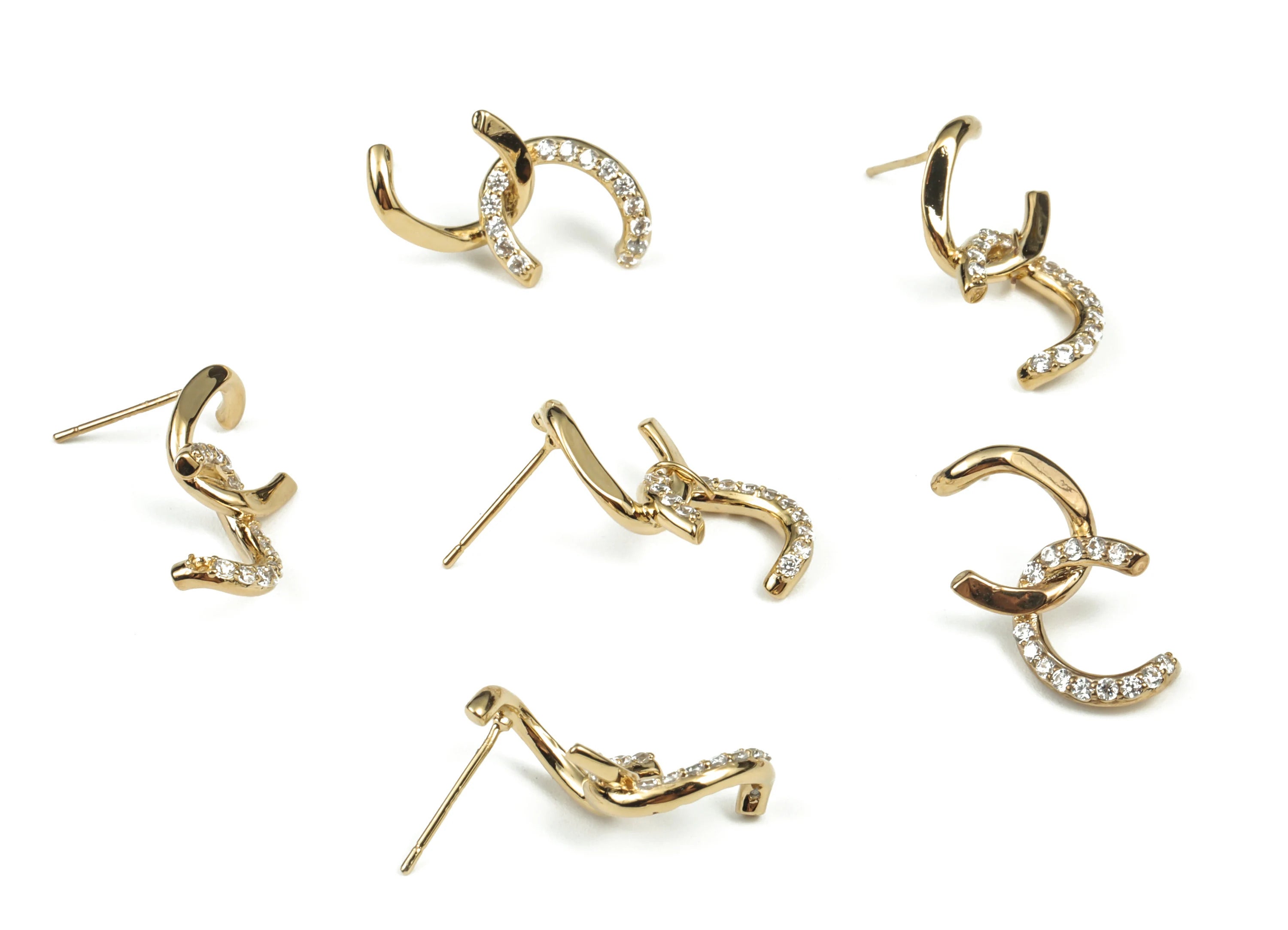 推回式耳钉 - 黄铜 - 锆石 - 925 银耳钉 - 18K 真金镀黄铜 - 4.7 克 -MJ101838