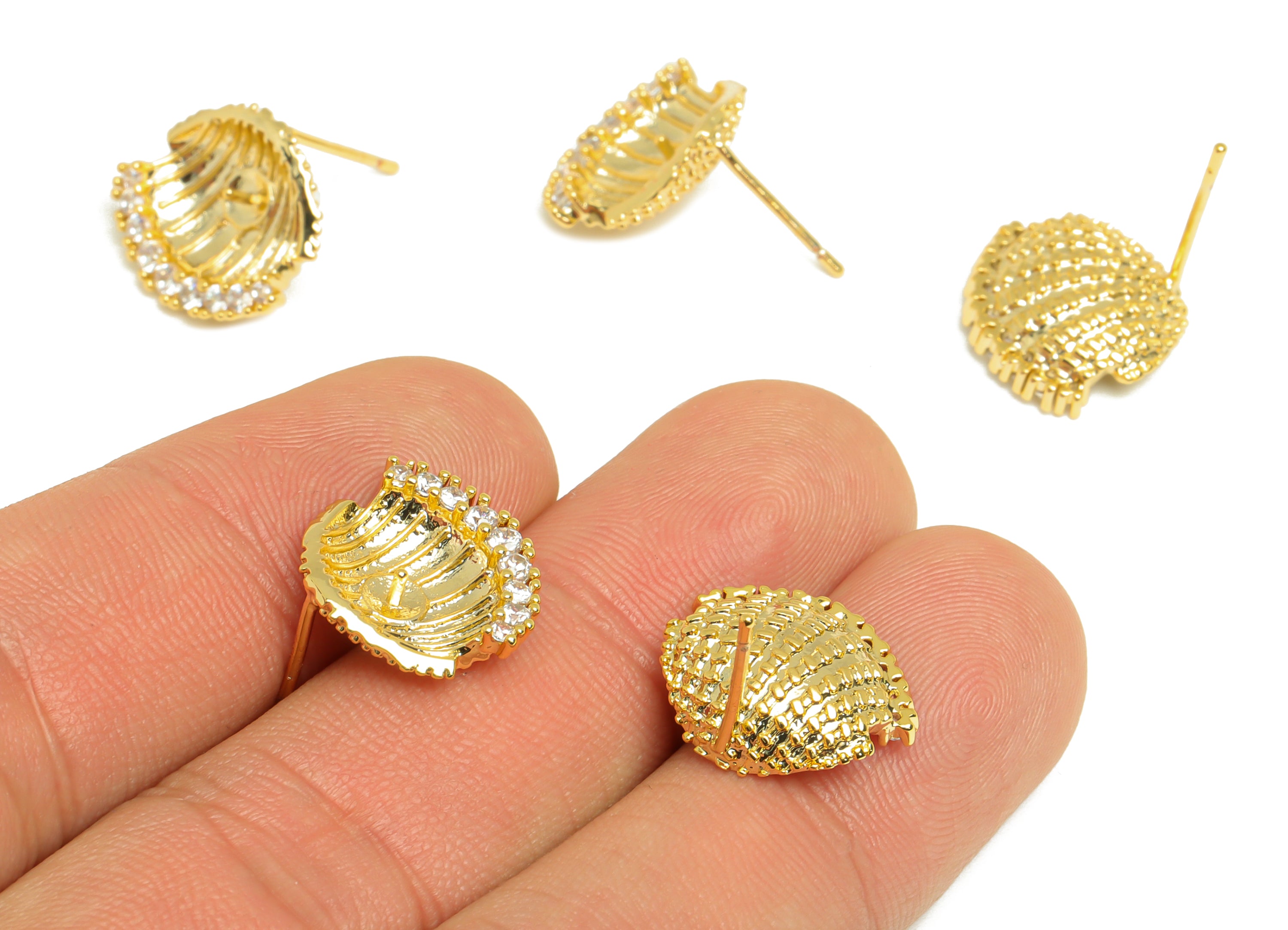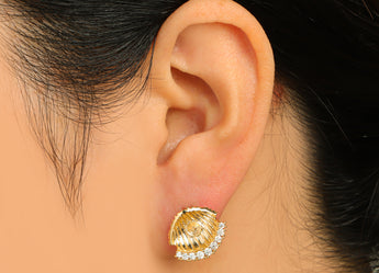 推回式耳钉 - 黄铜 - 锆石 - 黄铜耳钉 - 18k 真金镀层 - 5.3 克 - MJ201419