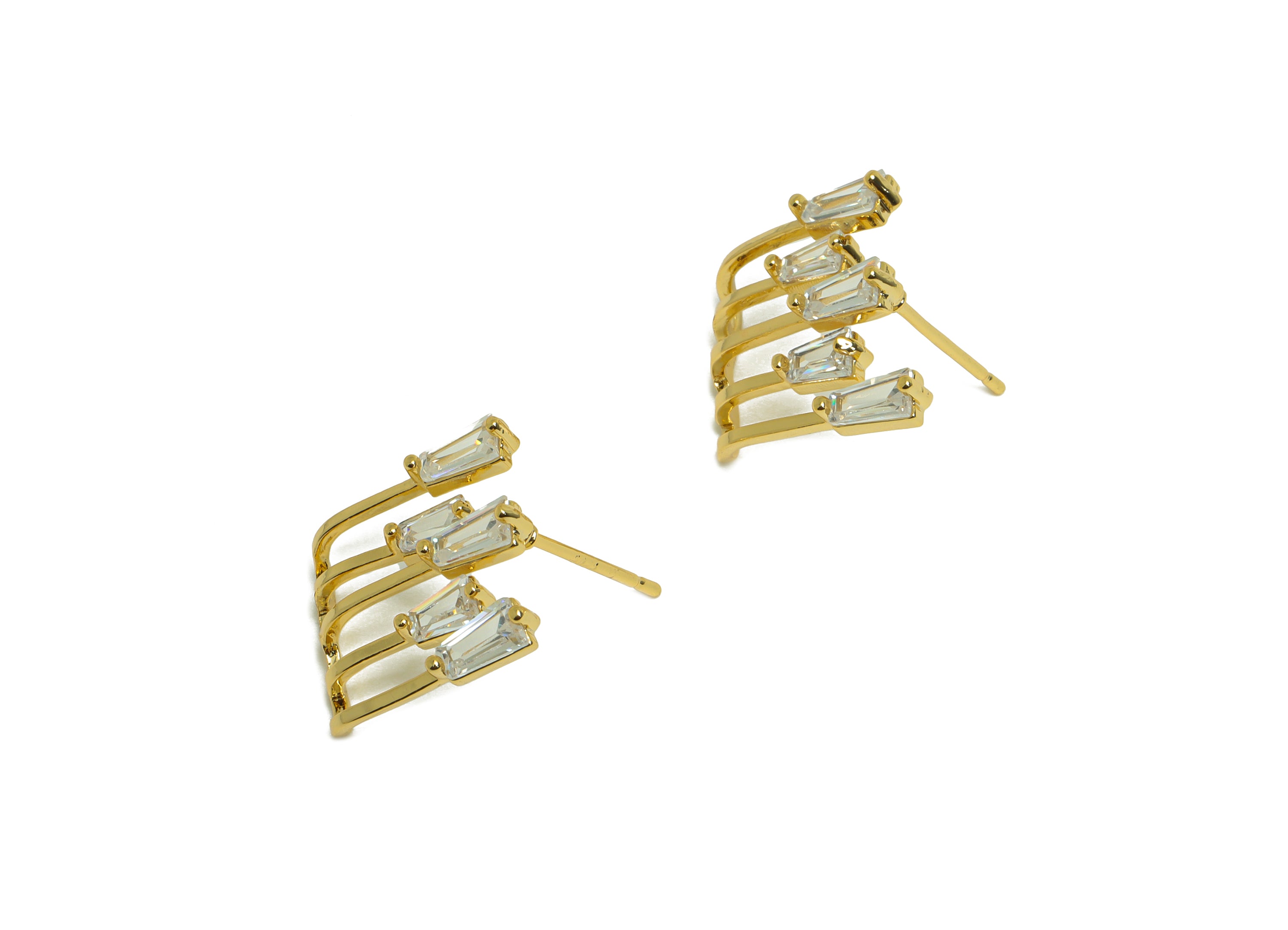 推回式耳钉 - 黄铜 - 锆石 - 镀银白铜耳钉 - 18k 真金镀层 - 4.5 克 - MJ201757