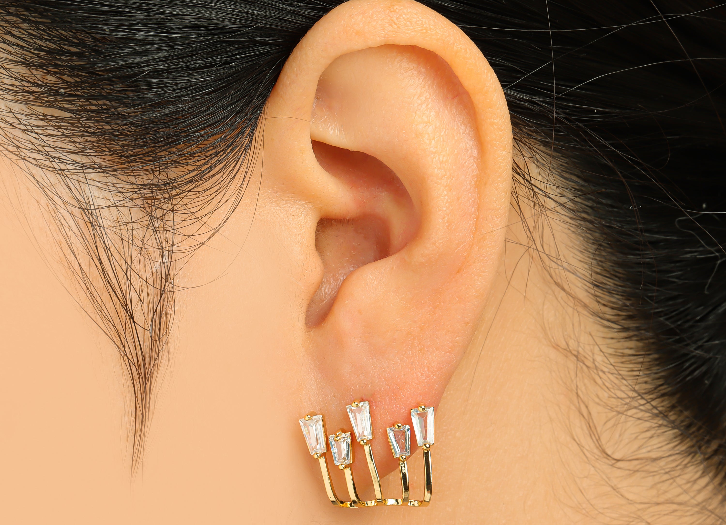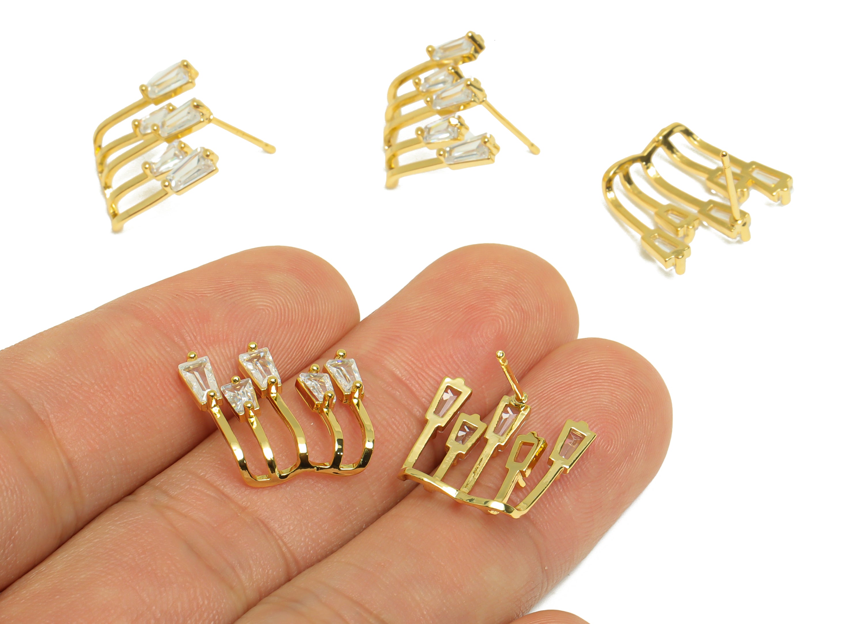 材质:黄铜 - 锆石 - 镀银白铜耳钉