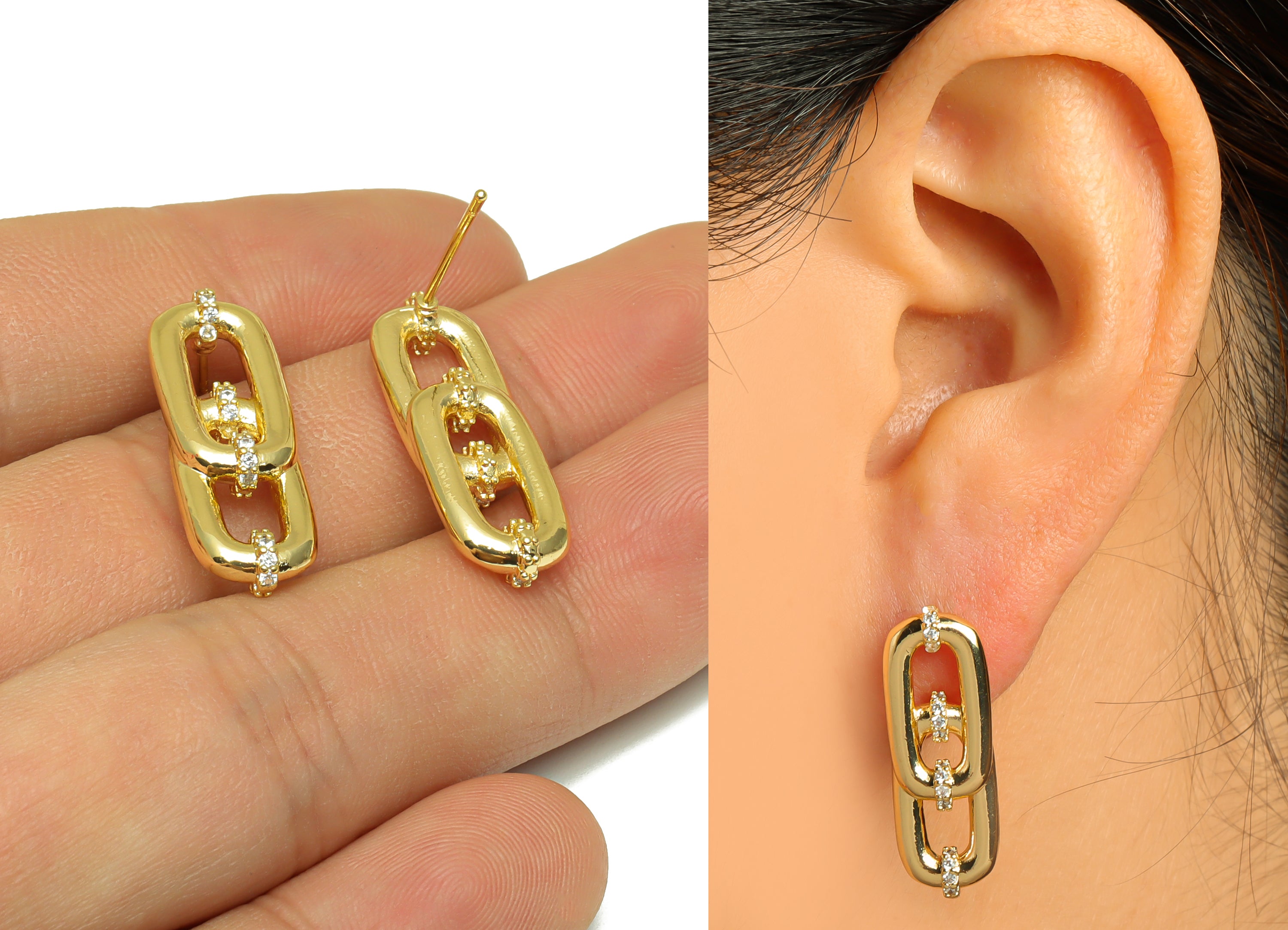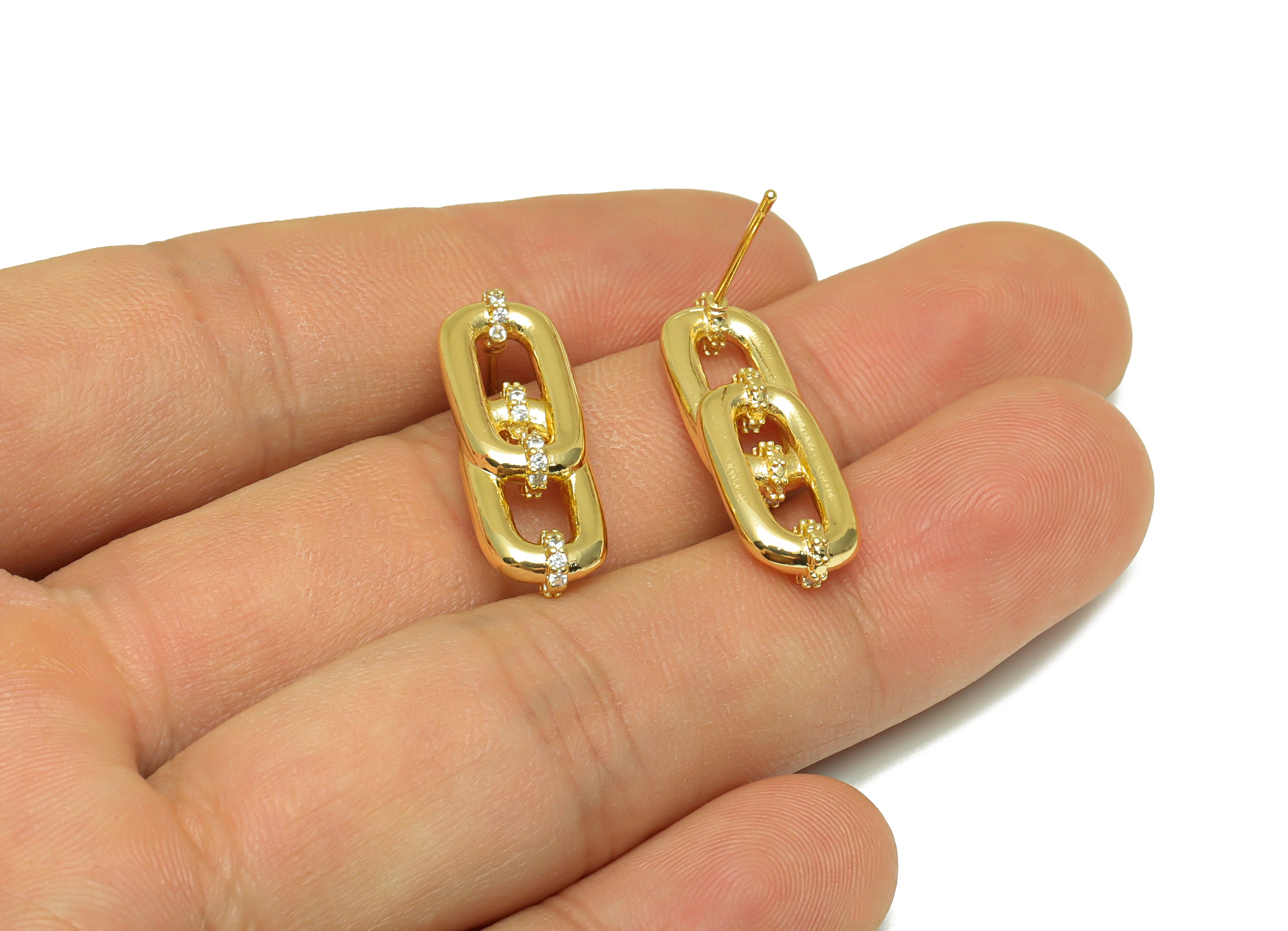 推回式耳钉 - 黄铜 - 锆石 - 不锈钢耳钉 - 18K 真金镀黄铜 - 8.2 克 - MJ200360