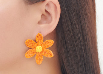 推回式耳钉 - 铁 - 拉菲草 - 铁耳钉 - KC 镀金色调 - 橙色 - 8.7 克 - MJ103307