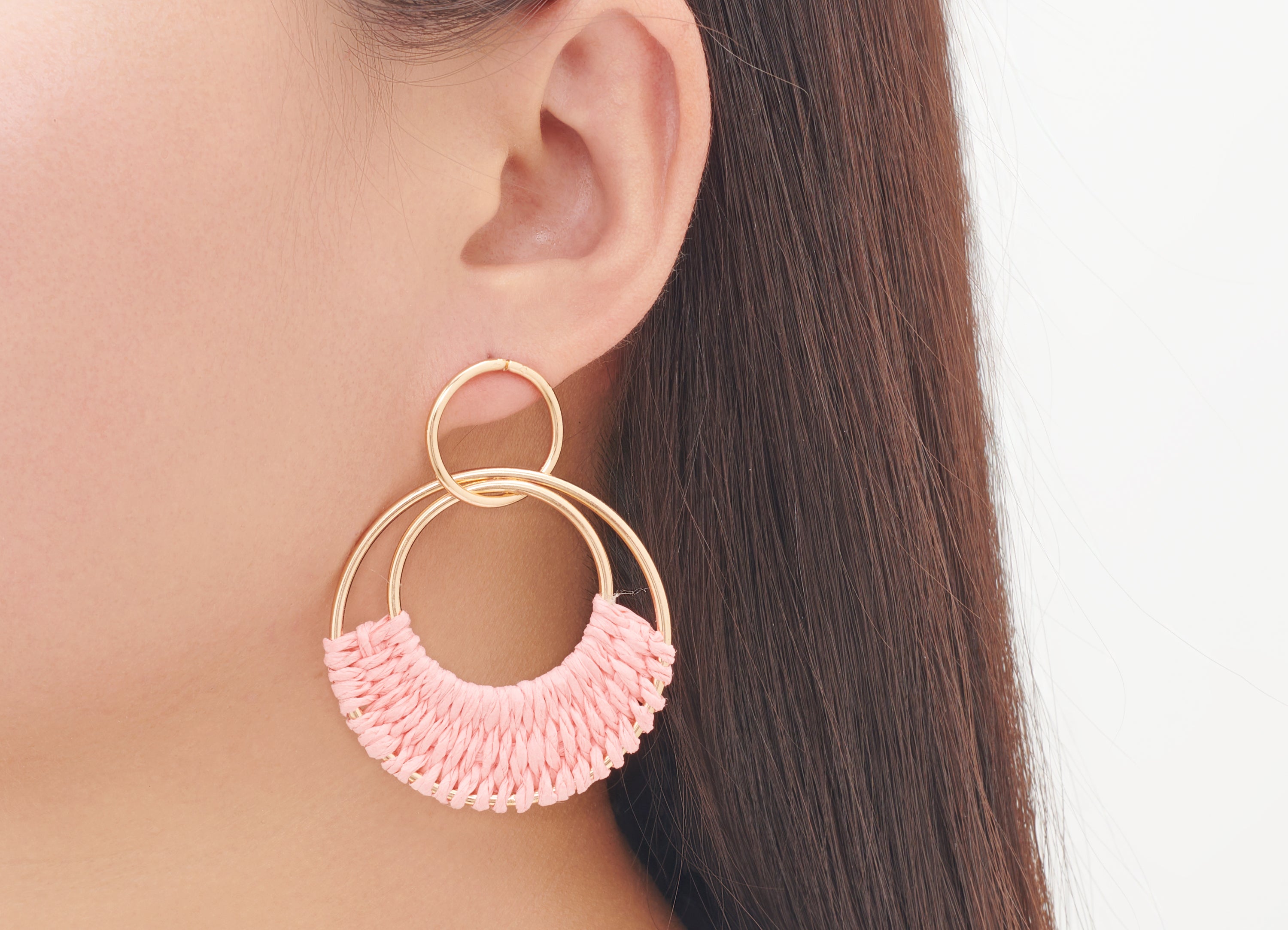 推回式耳钉 - 铁 - 拉菲草 - 铁耳钉 - KC 镀金色调 - 粉色 - 12.7 克 - MJ103301